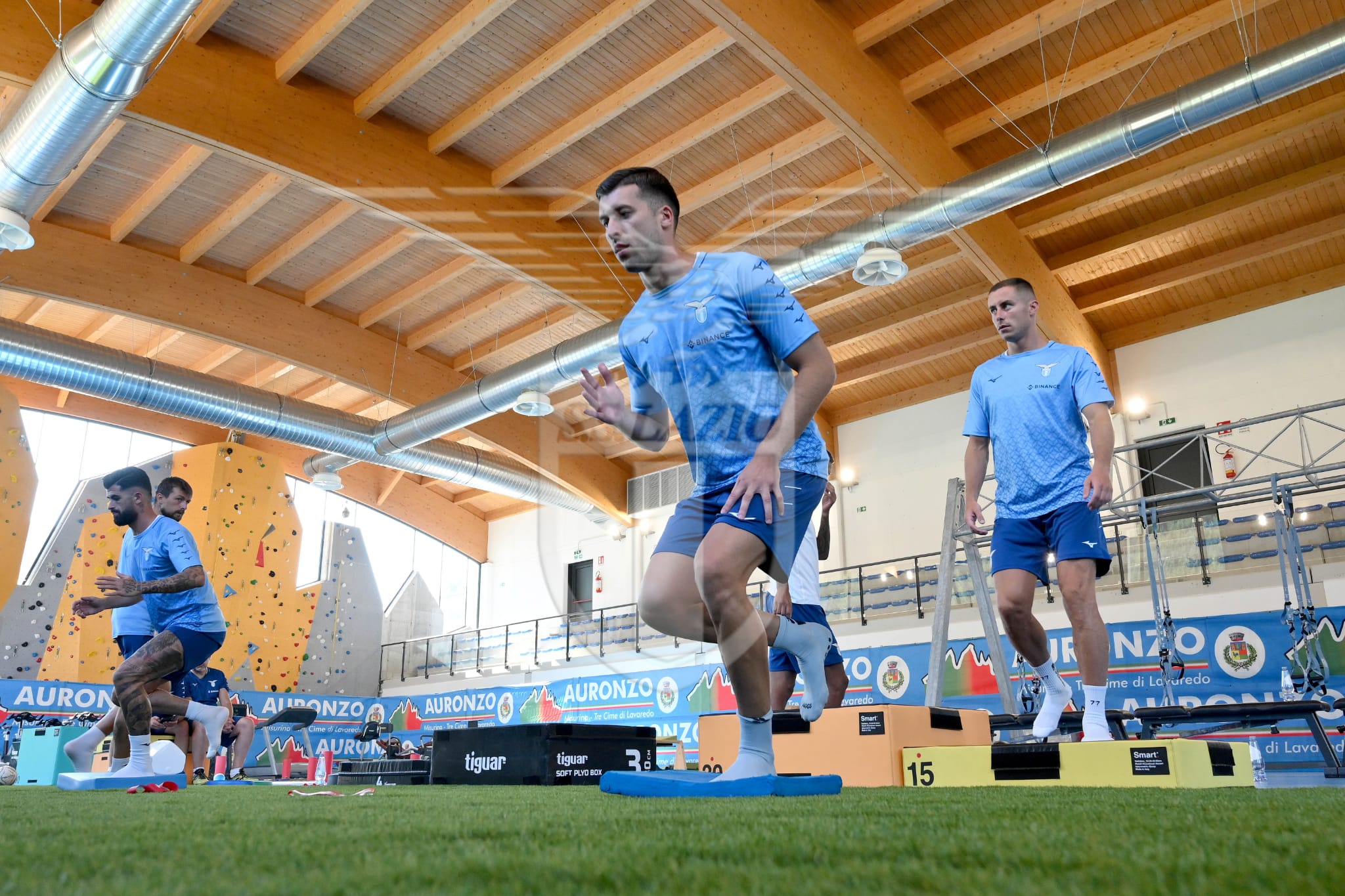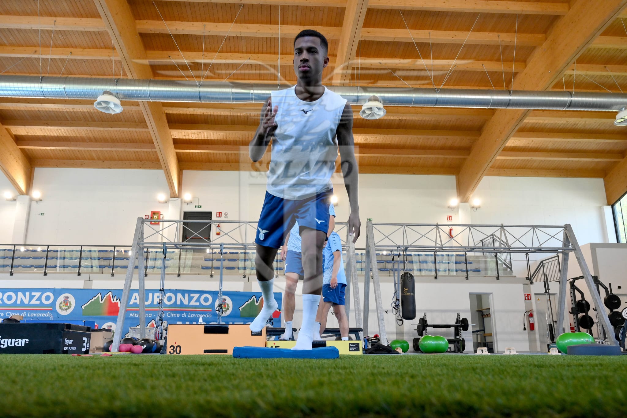 AGGIORNAMENTO ORE 10:10 - L'allenamento mattutino dei biancocelesti inizia, come di conueto, con un po' di lavoro in palestra.
