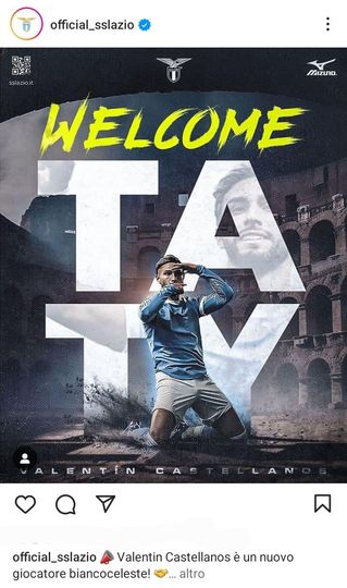 Valentin Catellanos è un nuovo calciatore della Lazio. L'attaccante si trasferisce in biancoceleste a titolo definitivo: al New York City vanno 15 milioni di euro. Dopo aver risolto tutti i problemi inerenti il visto, la società ha potuto ufficializzare il trasferimento del Taty nella Capitale. Nei prossimi giorni il calciatore raggiungerà il ritiro di Auronzo per iniziare, in modo concreto, la sua nuova avventura laziale. Di seguito la nota della società: "La S.S. Lazio comunica di aver acquisito definitivamente i diritti del contratto sportivo del calciatore Castellanos Gimenez Valentin Mariano Josè, proveniente dalla Major League Soccer, che ha giocato nell'ultima stagione sportiva nella Liga con il Club Girona FC".