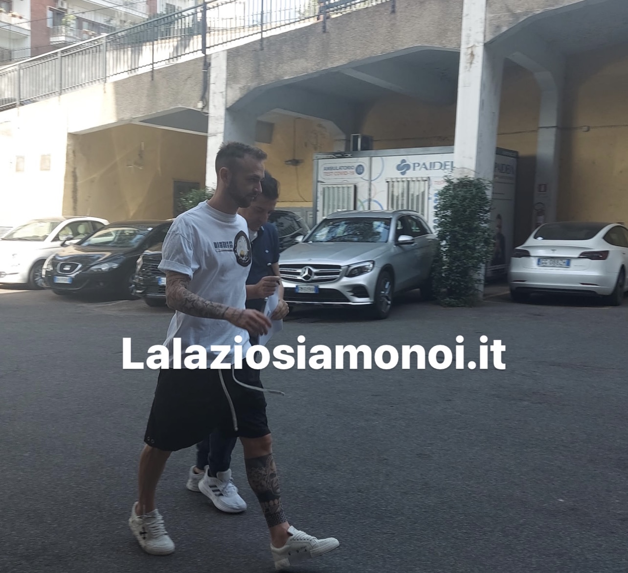 AGGIORNAMENTO ORE 8:55 - Praticamente in contemporanea ecco arrivare Manuel Lazzari e Pedro. Sorrisi, tshirt e pantaloncini i due si sono fermati a fare le foto di rito con i tifosi presenti fuori la Paideia. Poi dentro la clinica per svolgere i test atletici.
