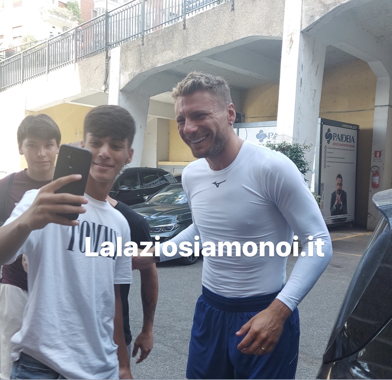 AGGIORNAMENTO ORE 9:30 - Tocca al capitano Ciro Immobile che in maglia tecnica Mizuno arriva in Paideia. Sorrisi e le foto con i tifosi presenti.