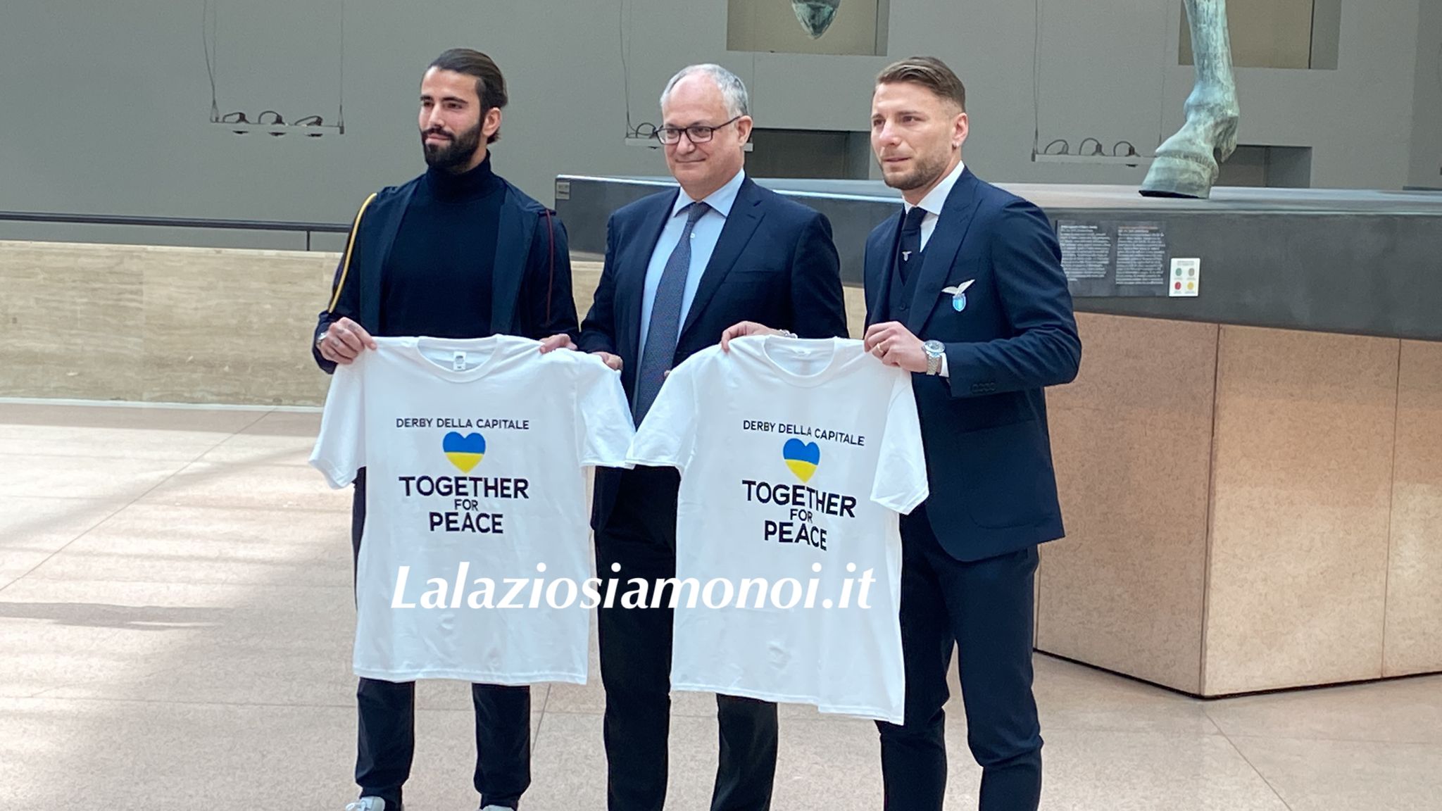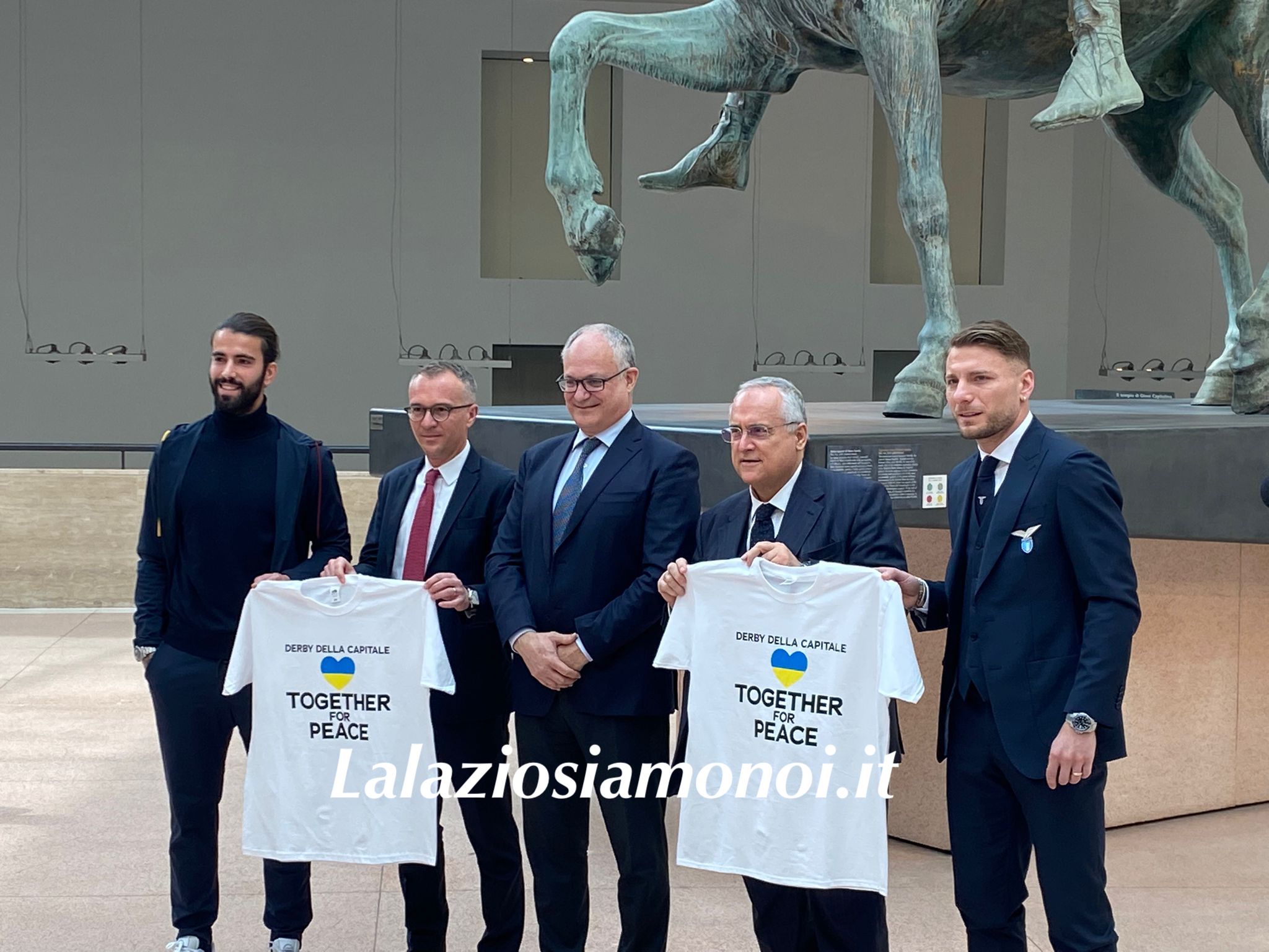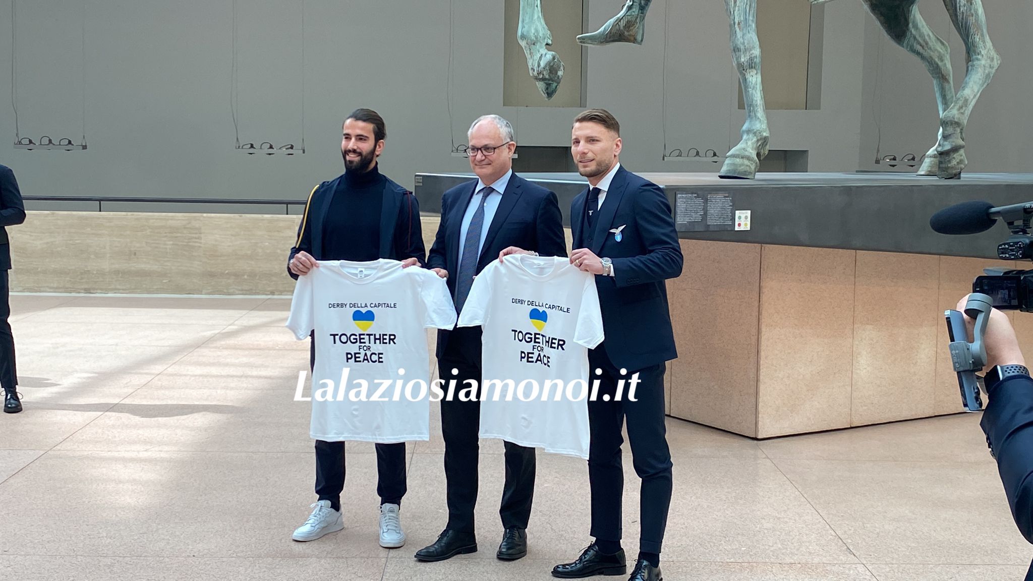 AGGIORNAMENTO ORE 11.20 - Prima di tutto, sono arrivate le parole del sindaco Gualtieri che ha introdotto l'iniziativa: "Sono davvero felice di essere qui con Sergio Oliveira e Immobile, con le società Roma e Lazio, alla vigilia di questo derby per cui è stato registrato anche il tutto esaurito all'Olimpico. È importante che in un momento così difficile, con una terribile guerra che sconvolge l'Europa, con l'Ucraina aggredita militarmente, tanti rifugiati che stiamo accogliendo anche a Roma, arrivi dalle due squadre un segnale di pace, solidarietà, fratellanza. Vedrete domenica i capitani e la squadra durante il riscaldamento con questa maglia "Insieme per la pace". Costituisce un messaggio importante che lo sport vuole dare ai tifosi, alla città e a tutto il Paese. Sono contento di avere Sergio in occasione della giornata in ricordo della Shoah. Faccio i complimenti a Immobile per il record, il sorpasso su Piola. Roma e Lazio sono due società che danno un messaggio positivo. Le ringrazio anche perché durante il derby verrà trasmesso sui maxi-schermi anche il promo di Expo 2030. Una giornata di sport ma anche un messaggio positivo per la pace".