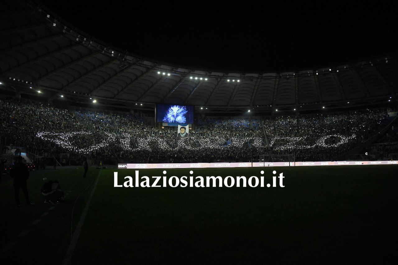 Al di sopra, la sua immagine. Al centro della Curva Nord, al centro del cuore del tifo biancoceleste che ha iniziato a cantare il suo nome con la passione che lo contraddistingue da sempre.