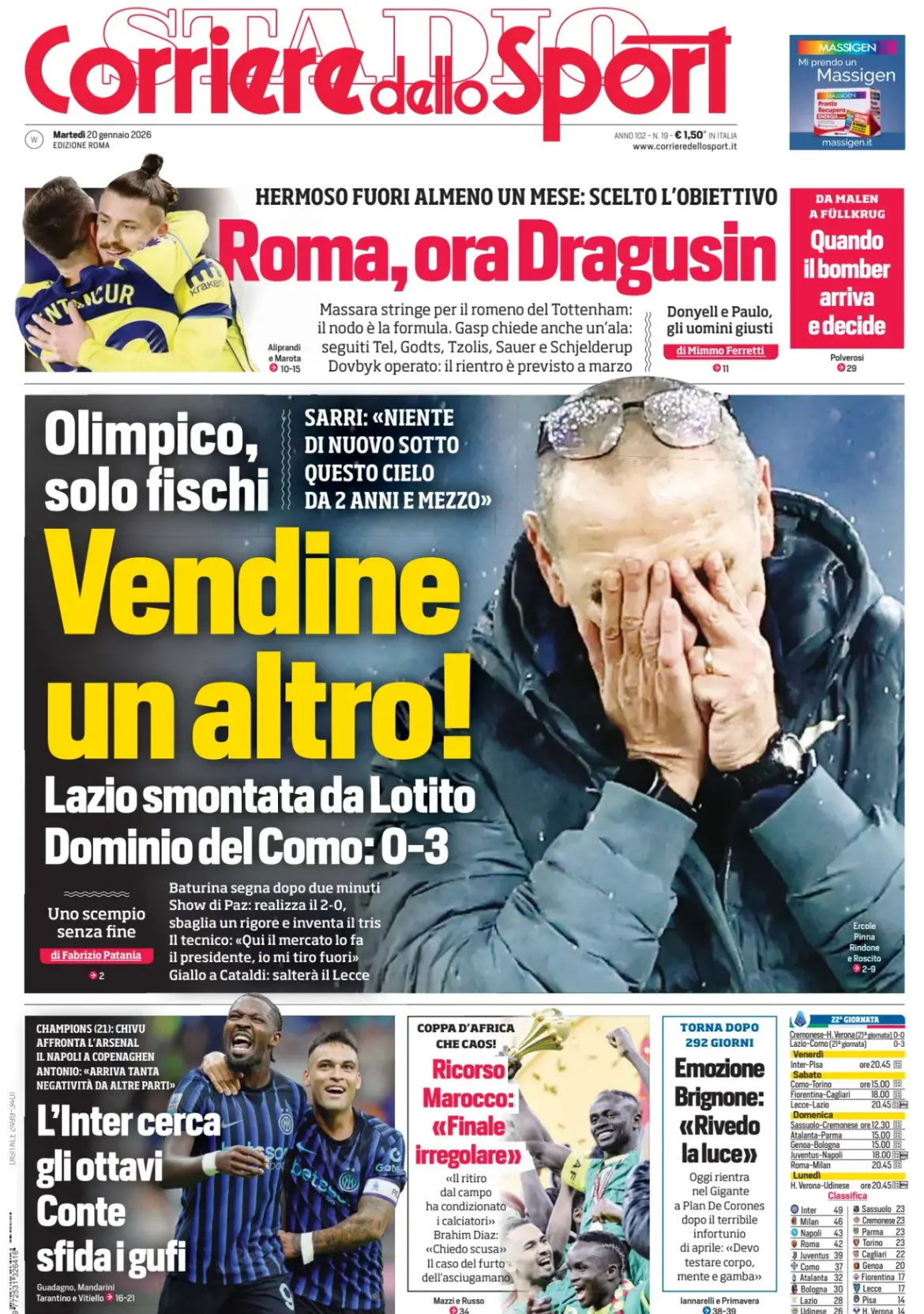 Lo stesso Corriere dello Sport prende posizione e quasi ironizza sulla situazione, attaccando l’operato della società. “Vendine un altro!”, questa la prima pagina del quotidiano. Un’asserzione perentoria, senza mezzi termini, che vuole fare luce su una situazione che rischia di diventare irrecuperabile. Forse, però, c’è ancora tempo per rialzarsi.