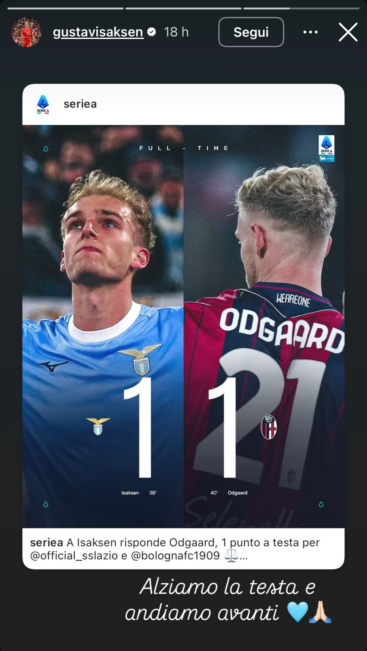 Gol e infortunio. Gustav Isaksen è stato uno dei protagonisti di Lazio - Bologna. L'esterno danese, dopo aver sprecato una grande occasione, ha sbloccato la partita, pareggiata poi da Odgaard.