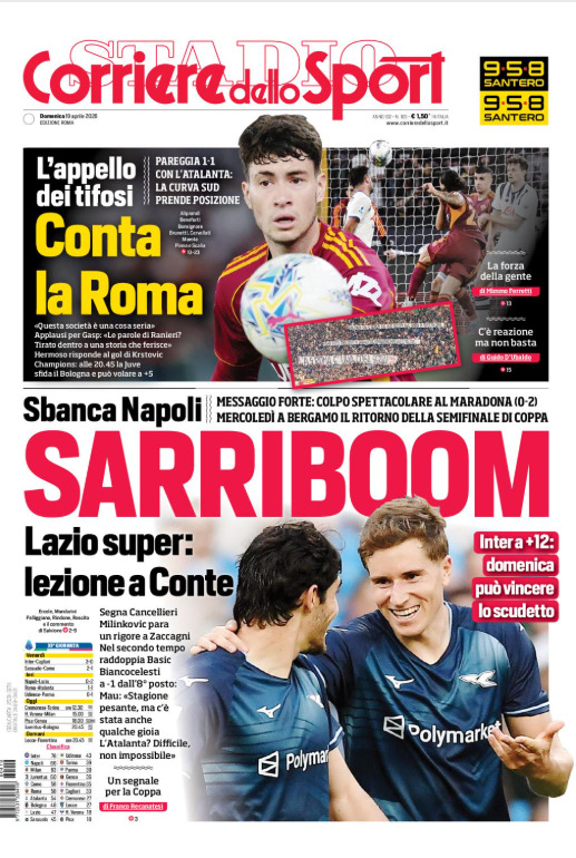 "Sarriboom", lezione a Conte: il Corriere dello Sport esalta una "Lazio super" - FT