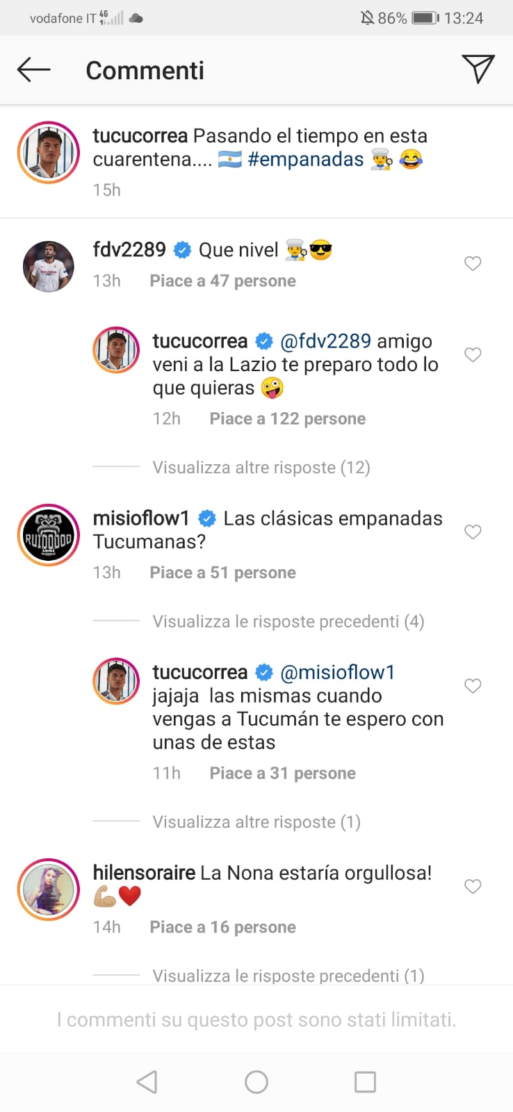 Ai tempi odierni, si sa, spesso le indiscrezioni di mercato arrivano direttamente dai social network. Come quella apparsa sul profilo Instagram di Joaquin Correa, amico ed ex compagno di Franco Vazquez, il centrocampista del Siviglia già in passato accostato ai biancocelesti. E proprio il Tucu lo ha invitato a venire alla Lazio, con un commento su una foto postata su Instagram. I due sono stati compagni di squadra, prima che Correa si trasferisse a Roma, ma l'amicizia non si è persa e il numero 11 biancoceleste, da buon amico, gli dà anche qualche consiglio. "Vieni alla Lazio. Ti preparo tutto quello che vuoi", questa la risposta di Correa al commento di Vazquez che aveva scritto "Che livello!" per complimentarsi dell'ultima creazione culinaria del Tucu.