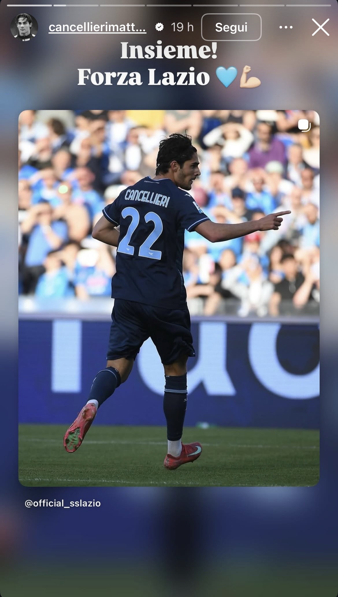 È tornato a segnare, Matteo Cancellieri. Il gol gli mancava da ottobre, nella gara casalinga contro il Torino. Al Maradona invece ha sbloccato la partita contro il Napoli, siglando il successo dei biancocelesti insieme a Basic. Dopo la vittoria, l'esterno ha esultato pubblicando il risultato in una storia su Instagram: "Insieme! Forza Lazio", ha scritto. Di seguito la foto.