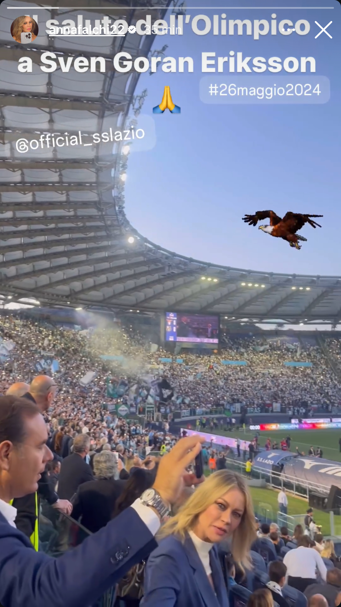 Sven-Goran Eriksson ci ha lasciati. Il tecnico svedese è morto all'età di 76 anni dopo una battaglia contro un tumore al pancreas. L'attrice di fede laziale, Anna Falchi, ha pubblicato una storia sul suo profilo Instagram ricordando il saluto dell'allenatore all'Olimpico in Lazio - Sassuolo dello scorso anno. Di seguito la foto.