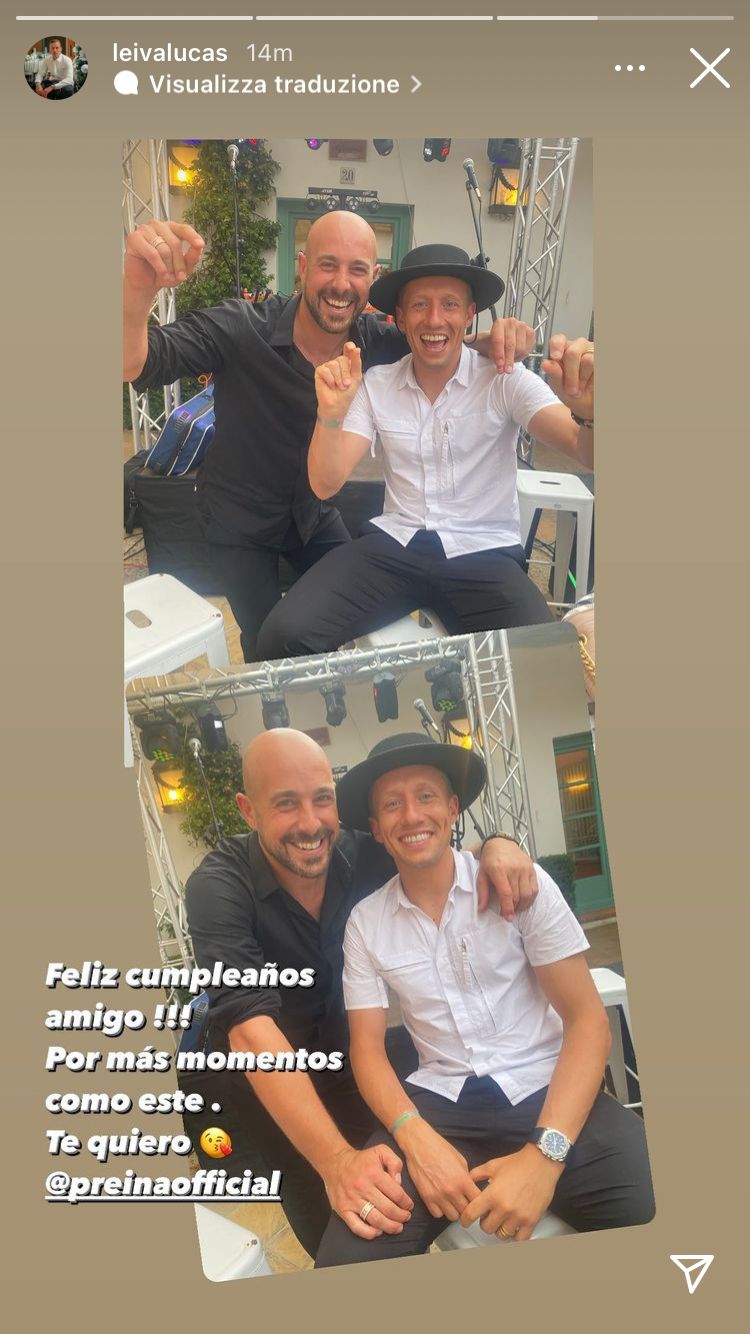 LEIVA - Lucas Leiva, anche lui con una Instagram Story ha pubblicato uno scatto che li ritrae insieme in un momento di spensieratezza e l'immancabile dedica: "Buon compleanno amico. A tanti momenti come questo. Ti voglio bene"