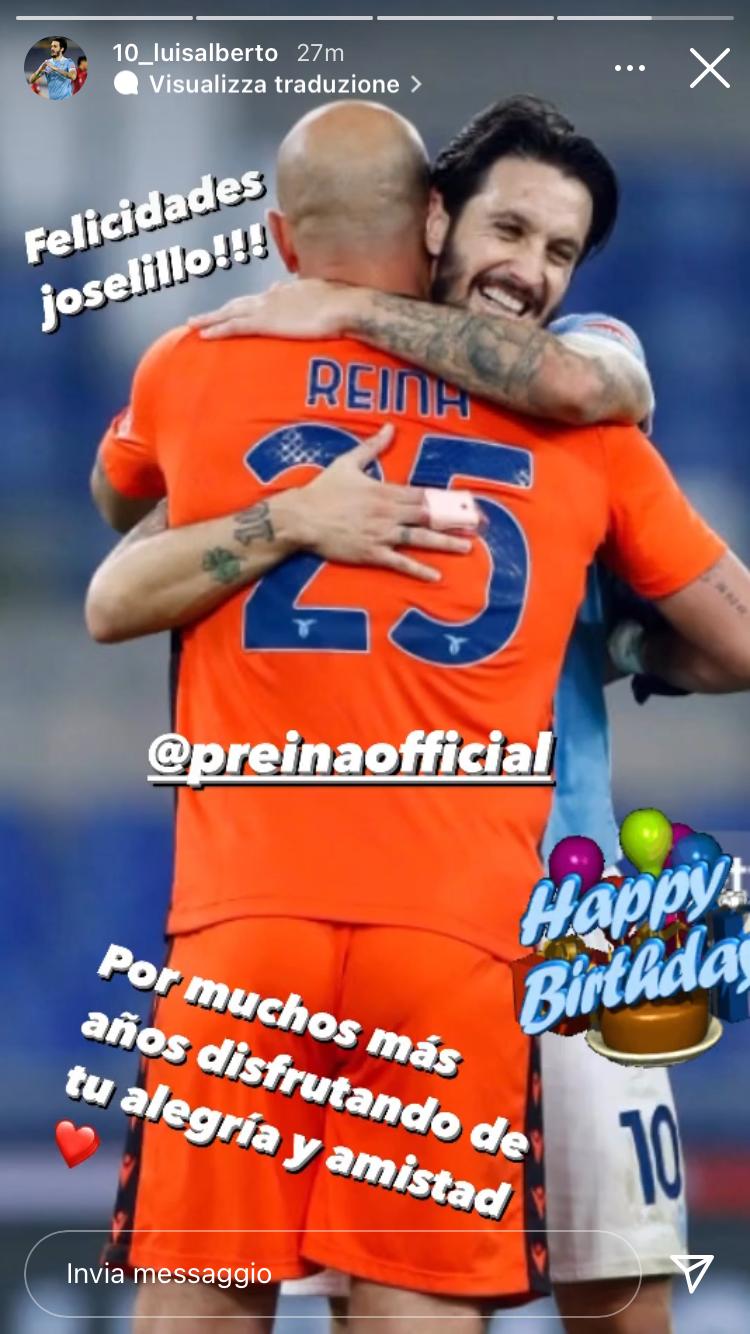 AGGIORNAMENTO 14.53 - Con gli auguri dei compagni di squadra, Instagram oggi si tinge di biancoceleste. Dopo i messaggi ricevuti dalla società in primis, la UEFA, Milinkovic, Pedro, Jony e Lucas Leiva, adesso arrivano anche quelli di Luis Alberto. Il "Mago" sulla sua Instagram Stories ha postato una foto con Pepe, scrivendo. "Congratulazioni Giuseppino!! Sperando di godere per molti più anni della tua gioia e amicizia, buon compleanno".