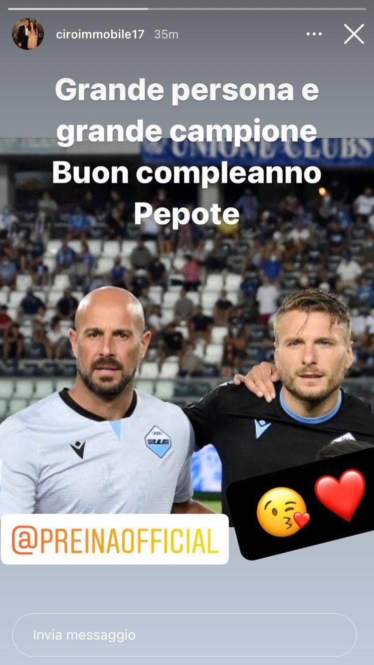 Giornata speciale in casa Lazio, oggi è il compleanno di Pepe Reina che compie 39 anni. L’estremo difensore diventato ormai essenziale per la squadra è anche un punto di riferimento per i suoi compagni sul campo e fuori, complice la sua grande esperienza professionale. Non potevano così mancare gli auguri del capitano Ciro Immobile che ha postato, tramite Instagram Story, una foto che li ritrae insieme. La dedica: “Grande persona e grande campione. Buon compleanno Pepote”