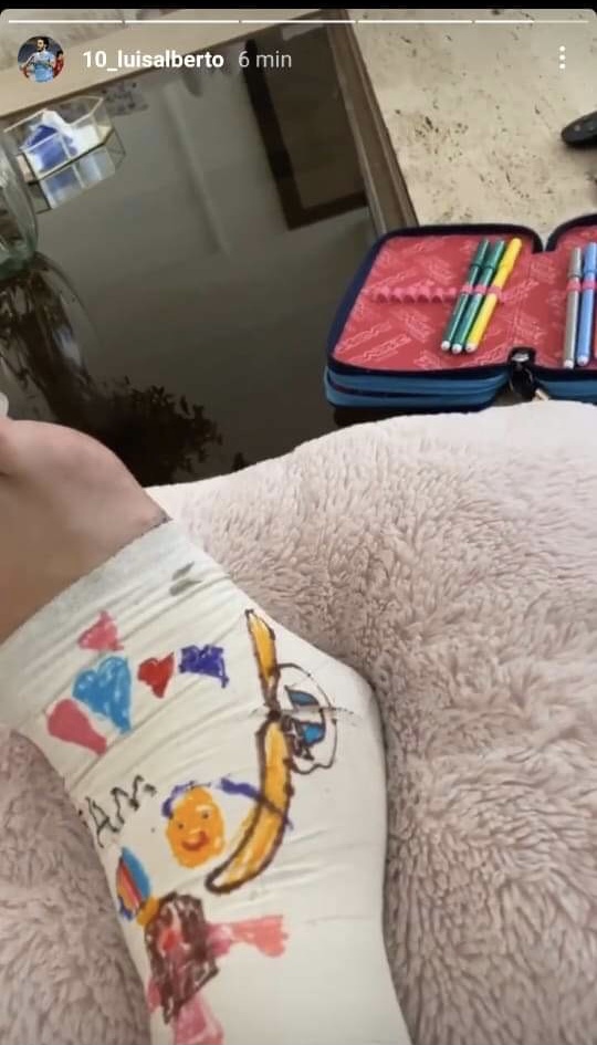 Caviglia fasciata per Luis Alberto. Il numero 10 della Lazio, dopo il duro scontro in allenamento con Armini, è a rischio per il match di sabato pomeriggio contro lo Spezia. Lo spagnolo ha pubblicato, tra le storie Instagram, un indizio sulle sue condizioni fisiche. Lo scatto riguarda la sua caviglia completamente fasciata e a riposo. Sulla benda i suoi figli si sono divertiti con disegni e scritte varie tra cui anche lo stemma della Lazio.