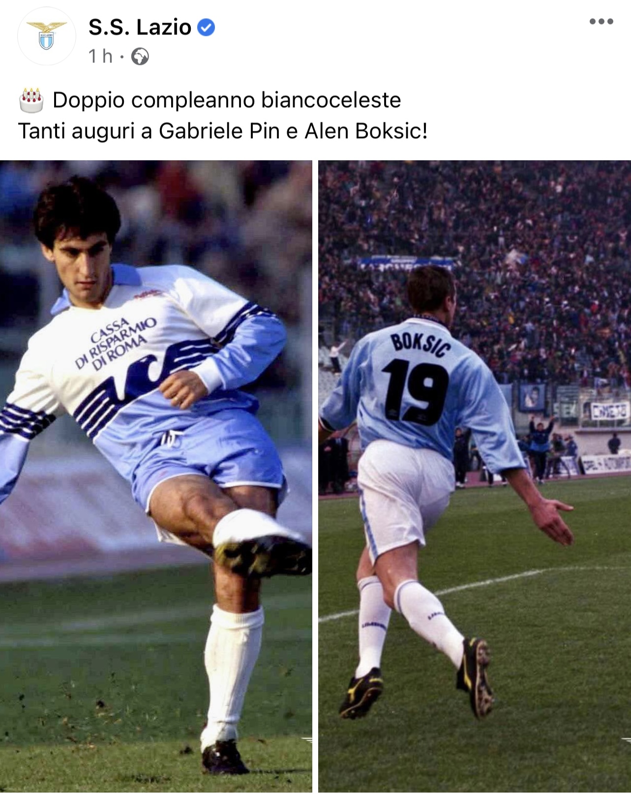 Gabriele Pin e Alen Boksic compiono oggi gli anni. L'ex centrocampista spegne 61 candeline, mentre l'ex attaccante 53. La Lazio ha voluto festeggiare i due con un post social. "Doppio compleanno biancoceleste. Tanti auguri a Gabriele Pin e Alen Boksic!".