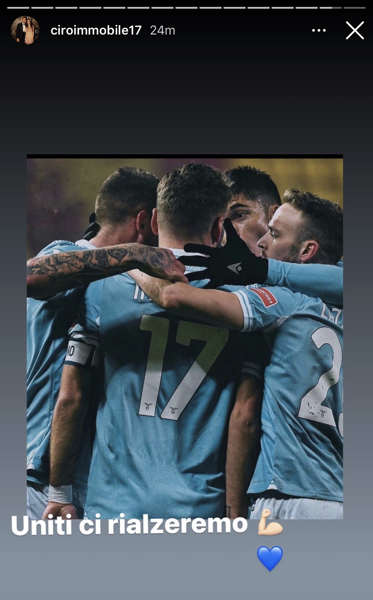 Lazio, il messaggio di Immobile: “Uniti ci rialzeremo” - FOTO