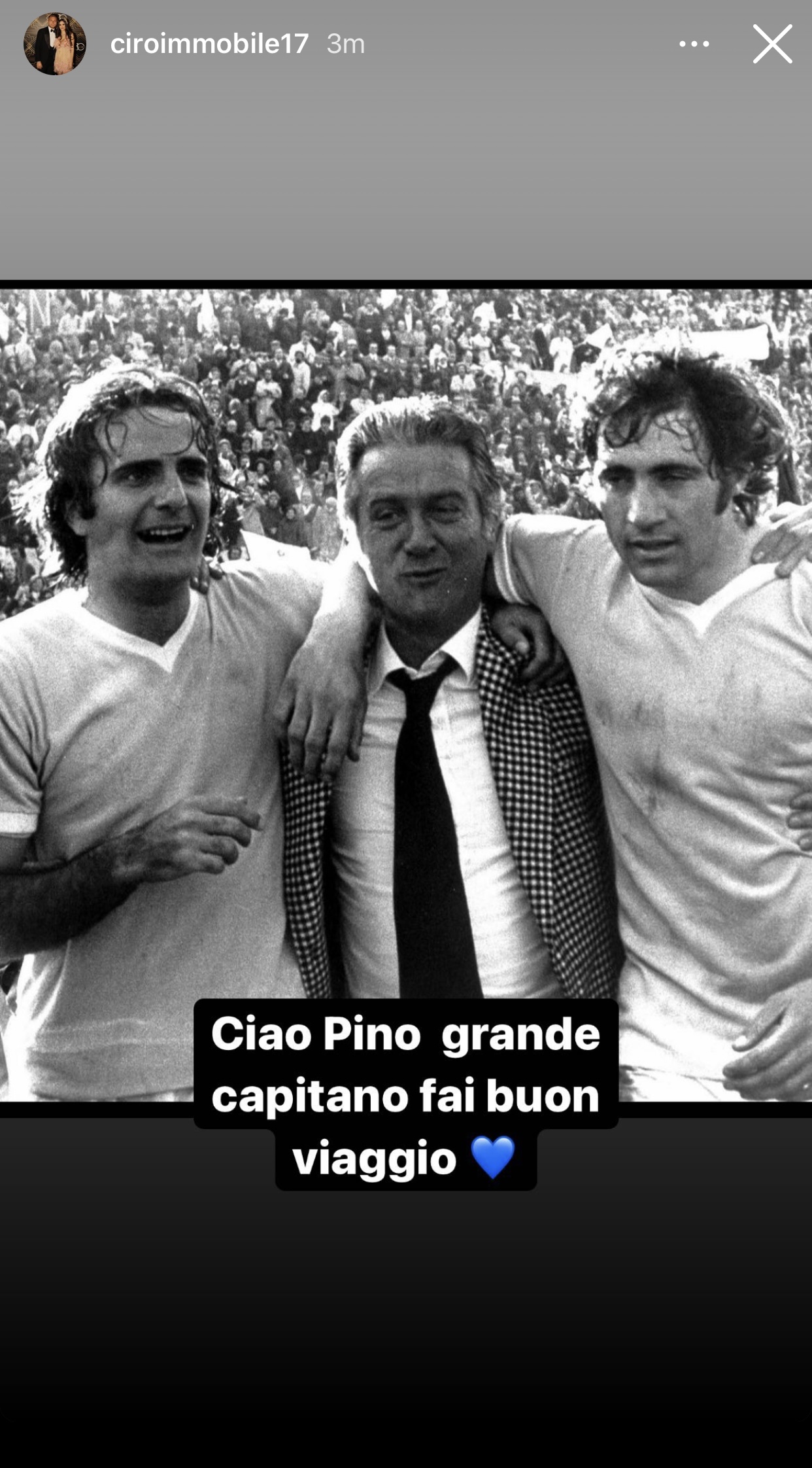 Il mondo Lazio è in lutto per la scomparsa improvvisa di Pino Wilson. L'ex bandiera e storico capitano del club capitolino negli anni 70, si è spento questa mattina all'età di 76 anni. In molti hanno lasciato un ultimo pensiero per l'ex biancoceleste. Dopo il presidente Claudio Lotito, anche l'attuale capitano Ciro Immobile ha deciso di mandare un ultimo saluto. Il numero 17, miglior marcatore della storia della società, ha pubblicato una foto di Pino tra le Instagram stories aggiungendo: "Ciao Pino, grande capitano. Fai buon vaggio".