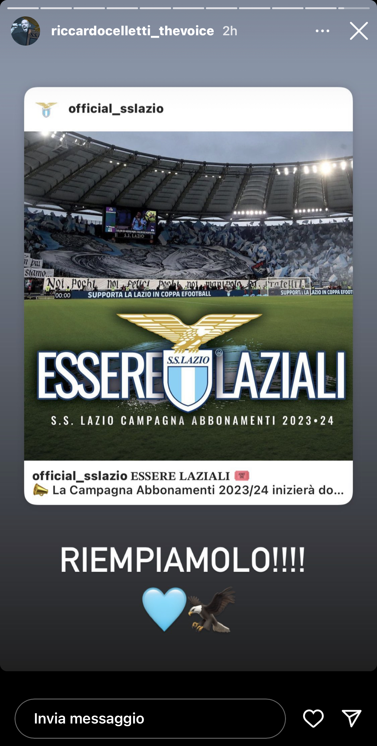 La Lazio ha lanciato la campagna abbonamenti 2023/24. Lo slogan è "essere laziali" e ha come immagine simbolo la coreografia della Curva Nord per il derby ispirata al discorso di Sancrispino di Enrico V scritto da William Shakespeare. Un tripudio di lazialità che nella prossima stagione dovrà strabordare dall'Olimpico per le partite casalinghe in Serie A. La chiamata alle armi, per rimanere in tema con la battaglia di Agincourt, è stata fatta anche da chi aizza il popolo biancoceleste a ogni gol. Lo speaker Riccardo Celletti ha condiviso nelle storie di Instagram il post fatto dalla società scrivendo: "Riempiamolo!!" (riferendosi allo stadio, ndr.).
