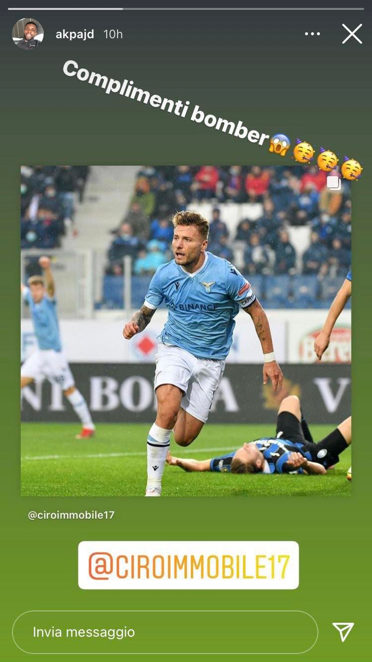 Lazio, la reazione di Akpa su Immobile: "Complimenti bomber" - FOTO
