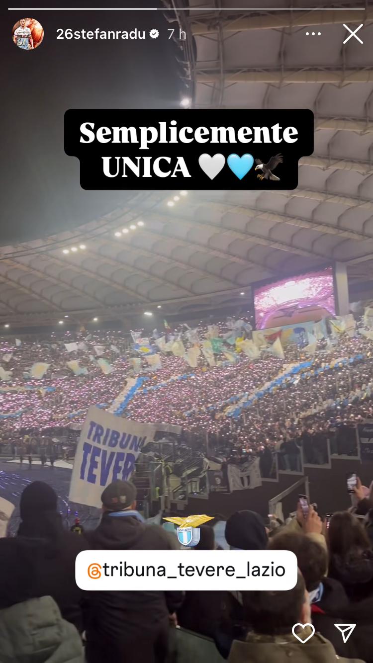 La Lazio festeggia i suoi 125 anni non solo con la nuova maglia, ma anche e soprattutto sugli spalti. La Curva Nord ha realizzato una coreografia mozzafiato, come al solito. Ad apprezzarla anche un tifoso in particolare come Stefan Radu, presente in Tribuna Tevere in occasione del match tra Lazio e Como. Proprio durante la coreografia, l'ex capitano biancoceleste ha ripreso il tutto pubblicandolo sui social: "Semplicemente Unica", questo il messaggio scritto da Radu.