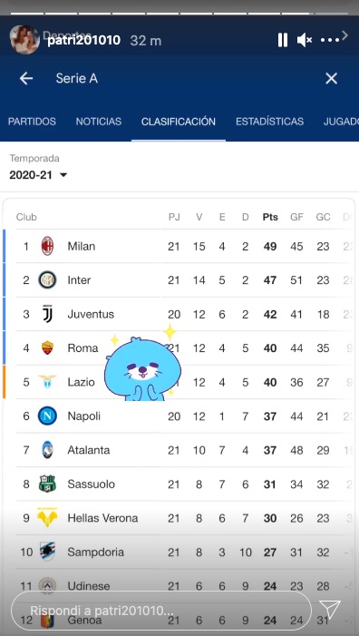 Tre punti importanti per la Lazio che grazie alla sesta vittoria consecutiva in campionato agguanta la Roma a 40 punti. Biancocelesti che accarezzano la zona Champions, solo i gol fatti li lasciano sotto i giallorossi in classifica. Sui suo profilo Instagram Patricia Venegas, moglie di Luis Alberto, ha applaudito i ragazzi di Inzaghi per questo risultato.