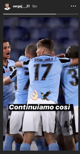 Oggi la Lazio non ha bisogno dei suoi servigi, signor Sergente. La Cremonese è troppa poca cosa per richiedere l'intervento dei big. Di fatto, rappresentati per una sera dai soli Acerbi e Immobile. E allora Milinkovic ha guardato i biancocelesti dalla panchina, scrutando con ammirazione i propri compagni dilettarsi tra un cross di Jony e un inserimento di Adekanye. Poi li ha applauditi. Fisicamente e virtualmente: “Continuiamo così”, scrive su Instagram Sergej. Un cenno d'intesa: “ok”, con di fianco un'aquila che spicca il volo. Come questa Lazio, per la quale il Sergente tornerà operativo dal prossimo sabato. La Coppa Italia può aspettare, c'è un campionato in cui continuare a stupire.