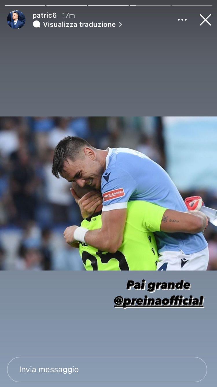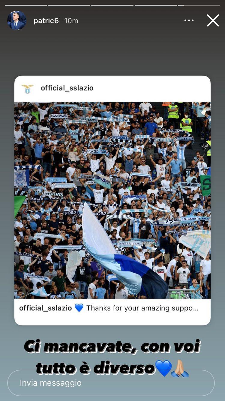 Un sabato da incorniciare per i biancocelesti che hanno annientato lo Spezia di Tiago Motta, imponendosi per 6 a 1. Ad assistere alla goleada finalmente, dopo un anno e mezzo, c’era il pubblico. Il dodicesimo uomo in campo è tornato a riempire gli spalti dell’Olimpico, grande protagonista del match. Ai festeggiamenti si unisce anche Patric, oggi titolare in campo, che con un post e delle Instagram Stories ha omaggiato i suoi compagni iscritti nel tabellino e il ritorno dei tifosi. “Ci mancavate, con voi tutto è diverso!” la dedica per i tifosi e “Animale” affettuosamente rivolto a Immobile autore della tripletta, il tutto accompagnato da un cuore blu. Lo spagnolo ha scherzato con il bomber: "Fallo un gol quando vuoi fra".