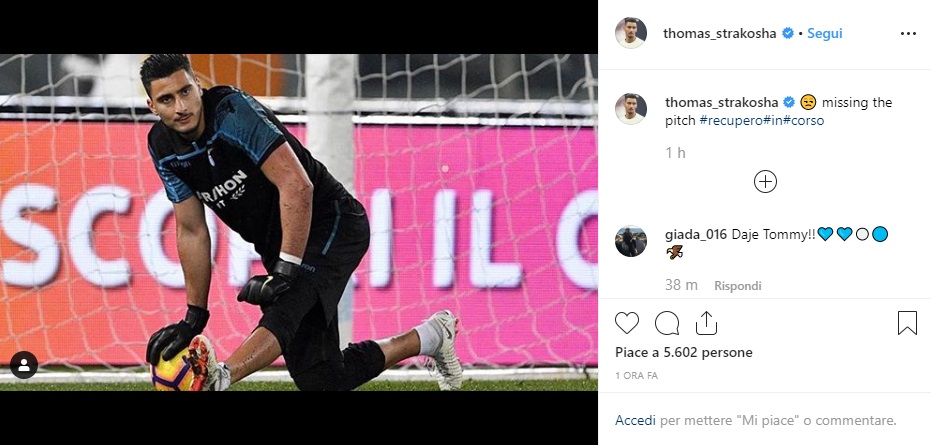 Recupero in corso per Thomas Strakosha. Come riportato di rassegna svolgerà le visite mediche il 16 luglio insieme a Immobile, Acerbi, Marusic, Badelj e Durmisi per risolvere il problema al tendine d'Achille che lo tormenta da un po'. La voglia di campo però è sempre molto forte e il portiere su Instagram la esterna, aggiornando sul recupero in corso. L'estate ha aiutato e riconsegnerà alla Lazio il suo numero uno.
