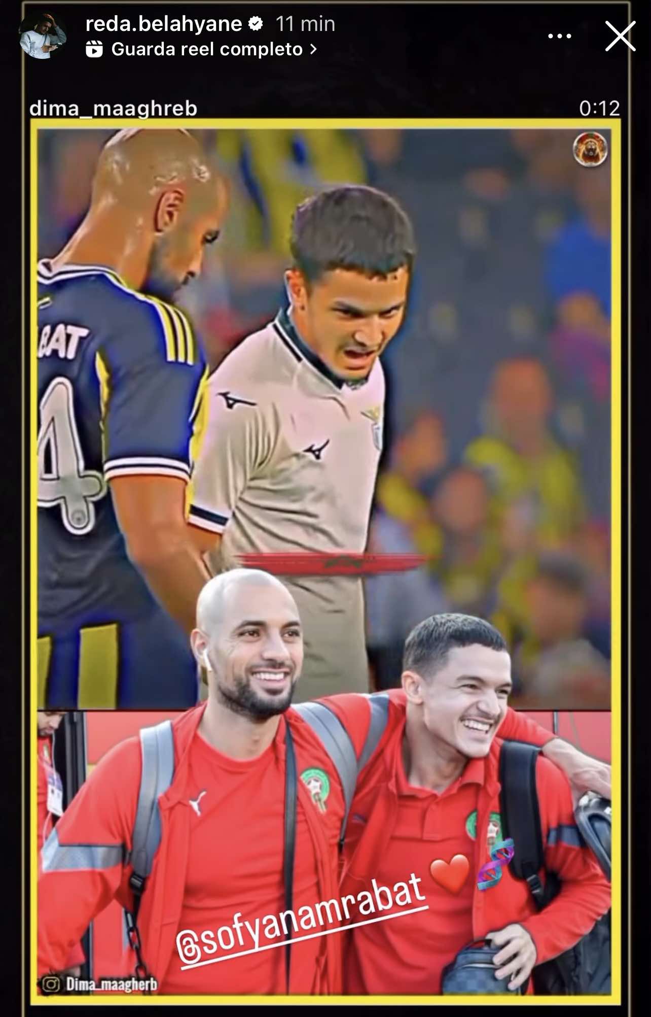 La sfida tra Lazio e Fenerbahce è stata un'amichevole utile per testare il livello di entrambe le compagini, ma non solo. Infatti, c'è stata una sfida nella sfida che vede protagonisti due elementi del centrocampo di entrambe le squadre: Reda Belahyane vs Sofyan Amrabat, compagni di squadra nella Nazionale marocchina e avversari sul campo ieri sera. Il laziale ha postato una storia sul proprio profilo Instagram assieme al connazionale.
