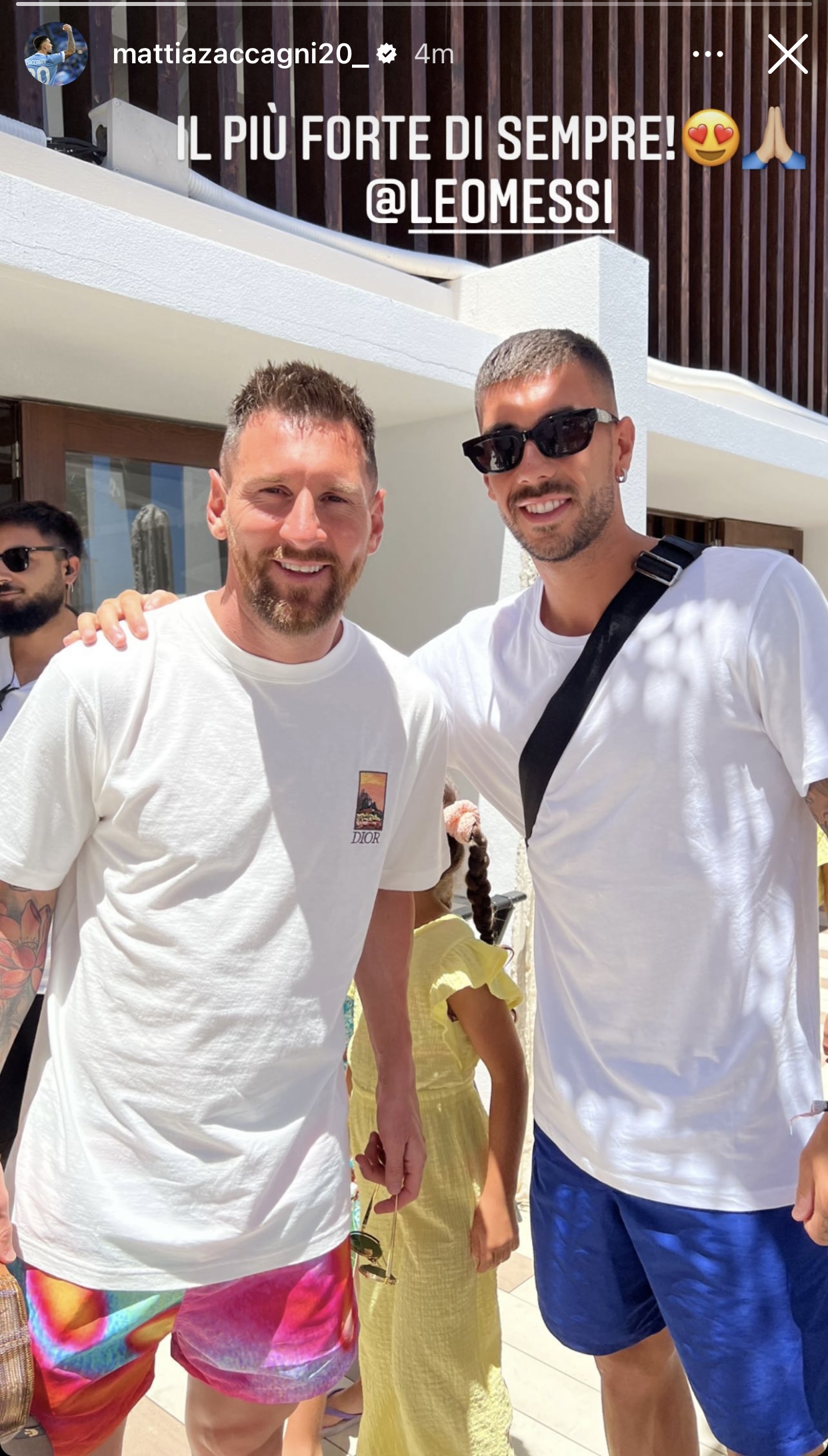 Un piacevolissimo incontro per Mattia Zaccagni che, nel corso della sua vacanza a Ibiza, ha avuto l'onore di conoscere niente di meno che Lionel Messi. Nel giorno del 35esimo compleanno del fenomeno argentino, l'esterno della Lazio lo ha fermato per le strade della splendida isola spagnola per chiedergli una foto insieme. Lo scatto, che ritrae i due in tipico abbigliamento estivo, è stato pubblicato dal 20 biancoceleste sulle Instagram stories. Zac ha aggiunto: "Il più forte di sempre". Chissà che questo incontro non possa essere una sorta di benedizione per la prossima stagione.