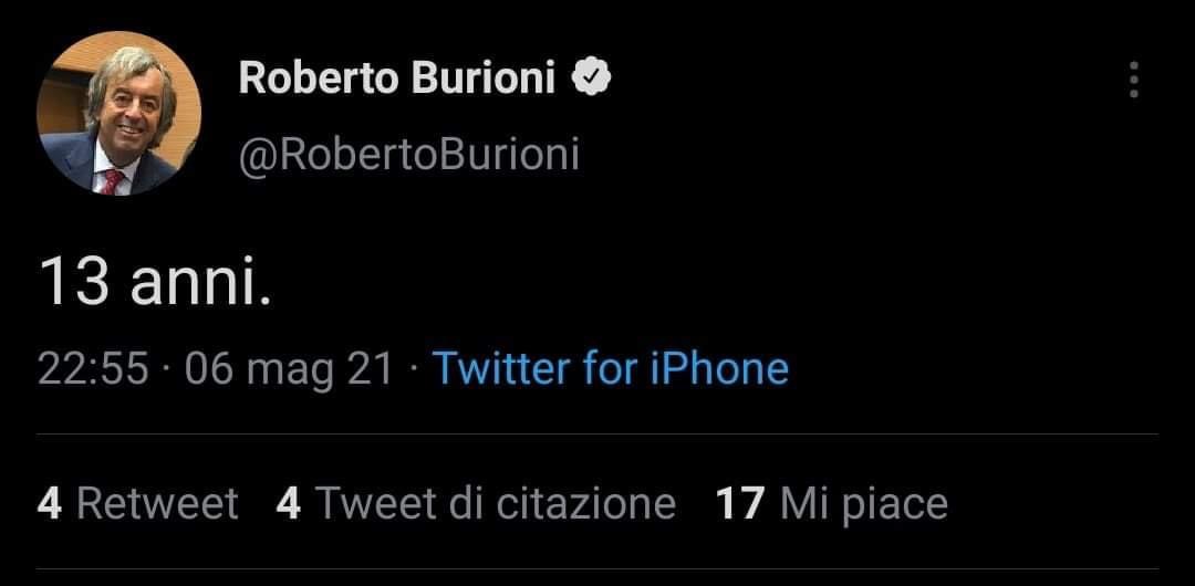 Mancano otto giorni al derby tra Roma e Lazio, ma in città si comincia a respirare l'aria della stracittadina. L'eliminazione dei giallorossi dall'Europa League segna la tredicisemisa stagione senza trofei per la squadra di Fonseca. A ricordare questo "traguardo" è stato Roberto Burioni. Il medico, tifoso biancoceleste, ha scritto un post su Twitter al termine del match dell'Olimpico scrivendo: "13 anni". I tifosi della Lazio hanno repostato in massa il tweet, mentre i giallorossi non hanno preso benissimo l'uscita del virologo e hanno preso d'assalto il profilo commentando numerosissimi.