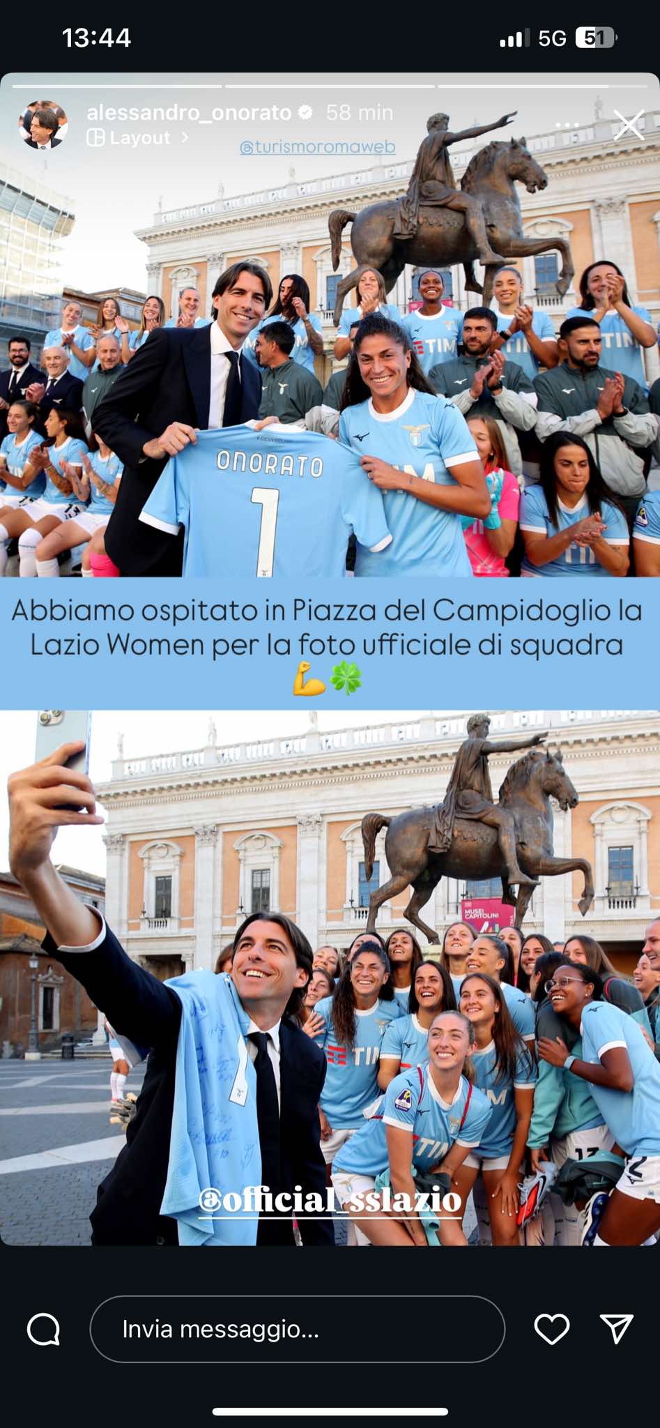 IL POST DELL'ASSESSORE - L’Assessore ha ripubblicato le foto sul proprio profilo Instagram, scrivendo tra le storie: “Abbiamo ospitato in Piazza del Campidoglio la Lazio Women per la foto ufficiale di squadra”.