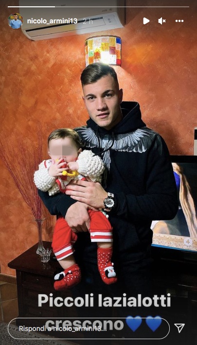 La fede laziale è una tradizione e come tale si tramanda. E chi meglio di un tifoso della Lazio come Nicolò Armini è in grado di farlo? Il difensore sta vivendo una nuova esperienza al Piacenza in prestito, ma il cuore resta a piene tinte biancocelesti. E su Instagram ha postato tra le sue storie una foto con un bambino in braccio e ha aggiunto la didascalia: "Piccoli lazialotti crescono", con tanto di cuore celeste. A casa Armini la fede calcistica è una e una sola e ai più piccolini va tramandata da subito.
