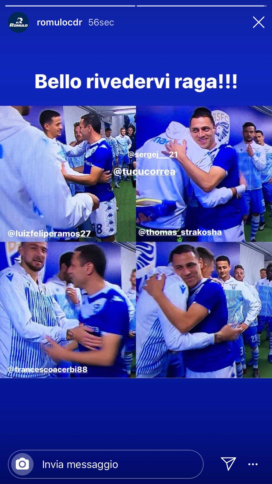 Chi ha avuto la fortuna di assistere alla diretta di Brescia - Lazio se ne sarà accorto. Una bella immagine, lacrimuccia virtuale sul viso di tanti tifosi biancocelesti. In soli 6 mesi a Roma, Romulo - un nome che diceva tutto - ha lasciato il segno. In campo, con ottime prestazioni. E di conseguenza nel cuore dei laziali e dei suoi, ormai ex, compagni di squadra. Oggi tra le fila delle Rondinelle, fino a giugno esterno destro di Inzaghi. Per questo nel pre-partita della sfida contro la Lazio, l'italo-brasiliano ha salutato e abbracciato uno a uno tutti i suoi amici biancocelesti. Colleghi ai quali si è affezionato e con cui ha alzato anche una Coppa Italia, primo vero trofeo della sua carriera oltre allo Scudetto vinto dall'infermeria quando vestiva la maglia della Juventus: “Bello rivedervi raga!”, scrive su Instagram. E via di tag, impossibile contenerli tutti. Brescia - Lazio, tra le tante chiavi di lettura, ha rappresentato anche questo. Un bel momento di saudade a tinte biancocelesti.