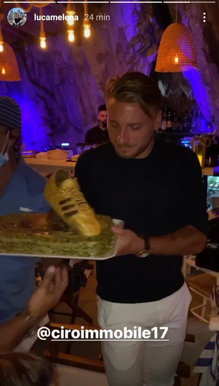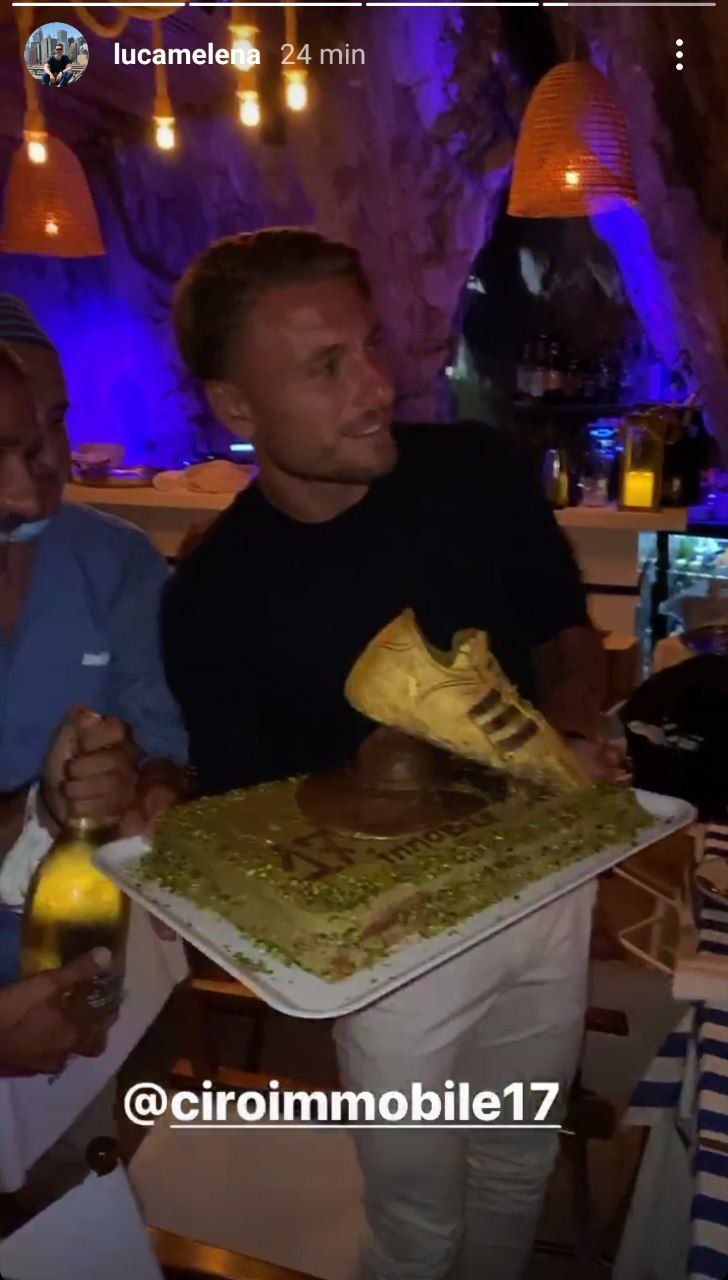 Non accennano a terminare i festeggiamenti per Ciro Immobile. L'attaccante, al termine di un campionato che l'ha visto capocannoniere della Serie A e vincitore della Scarpa d'Oro, si sta godendo qualche giorno di relax con alla famiglia al completo. L'attaccante della Lazio, che ha ammirato gli splendidi panorami della Costiera Amalfitana, è approdato a Positano. A cena in un noto ristorante del luogo, il bomber di Torre Annunziata ha ricevuto un'accoglienza davvero speciale: lo staff del locale ha preparato per il "cecchino biancoceleste" una torta dorata. In cima, ovviamente, la Scarpa d'Oro, conquistata alla fine di un duello con Lewandowski. A rendere nota la sorpresa organizzata per Immobile, suo cognato Luca, su Instagram.
