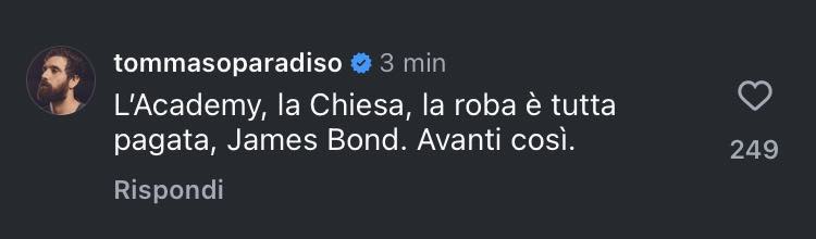 Troppo Como per questa Lazio. Gli uomini di Sarri sono apparsi spaesati, lenti e sopraffatti dal ritmo imposto dai lariani. I tifosi biancocelesti continuano a sfogarsi sui social, una protesta che non si ferma da mesi e che la prestazione di questa sera non fa che accentuare. Alcuni sono commenti iracondi, altri più ironici e polemici come quello fatto dal noto cantautore Tommaso Paradiso, che ha scritto così sotto l'ultimo post social della Lazio: "L'Academy, la Chiesa, la roba è tutta pagata, James Bond. Avanti così".
