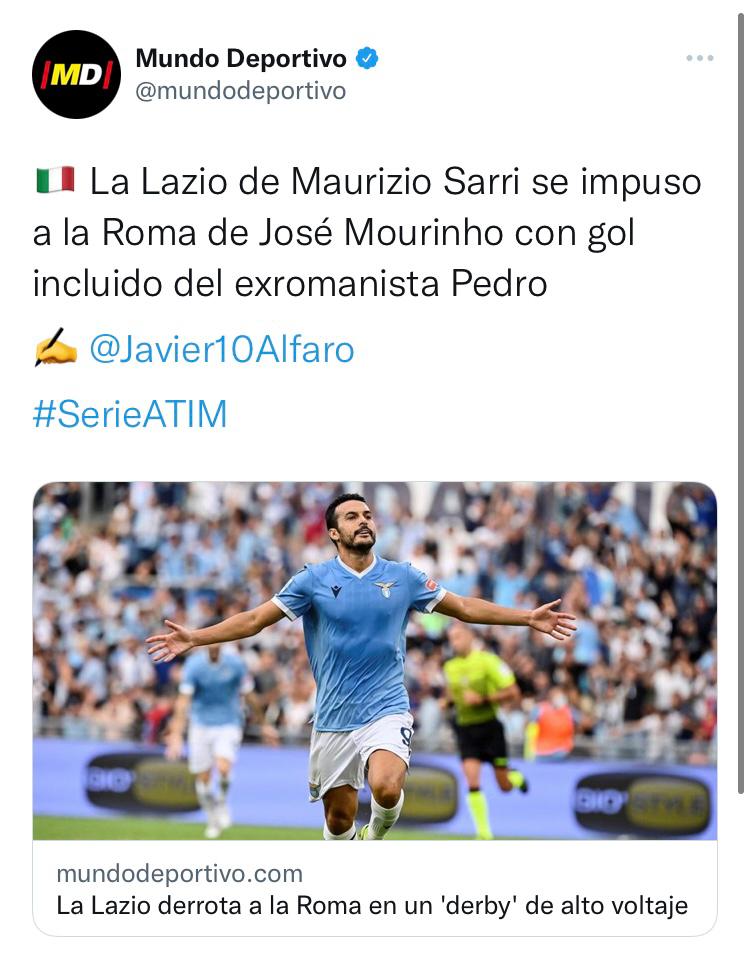 Derby, la stampa estera elogia la squadra di Sarri: "La Lazio manda Mou dai leoni"– FOTO