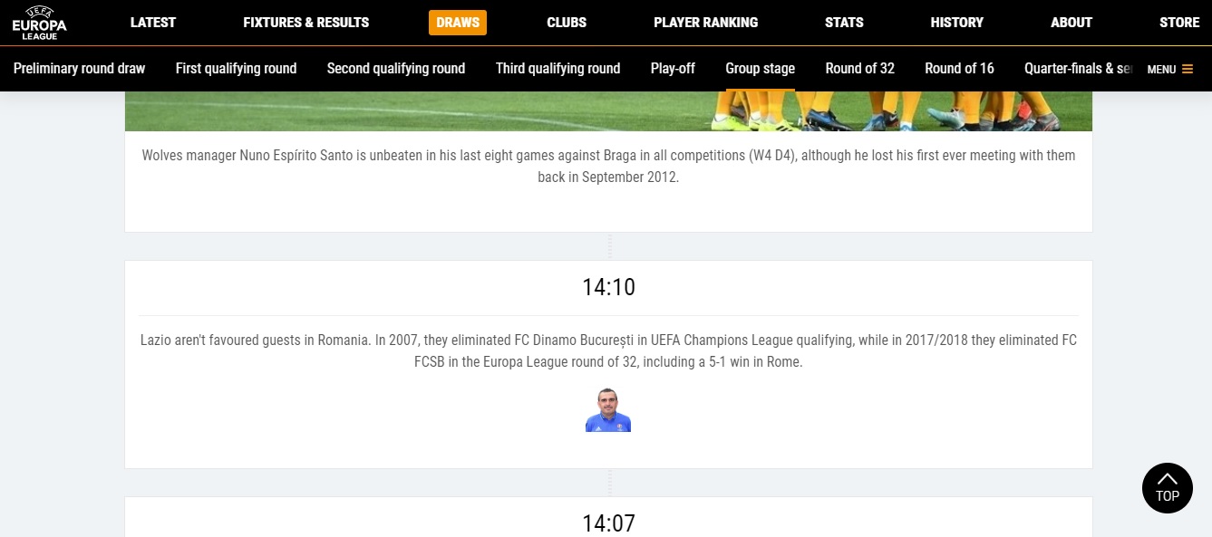 Il sorteggio di Europa League ha riservato alla Lazio il Celtic Glasgow, il Rennes e il Cluj. Quanto a quest'ultimo impegno i biancocelesti non vantano precedenti diretti, anche se negli ultimi anni sono stati spesso di scena in Romania, come ricorda la UEFA sul suo sito ufficiale: "La Lazio è favorita in Romania. Nel 2007, i biancocelesti hanno eliminato l'FC Dinamo București nelle qualificazioni della UEFA Champions League, mentre nel 2017/2018 hanno eliminato l'FC FCSB nei sedicesimi di finale di Europa League con una vittoria per 5-1 a Roma".