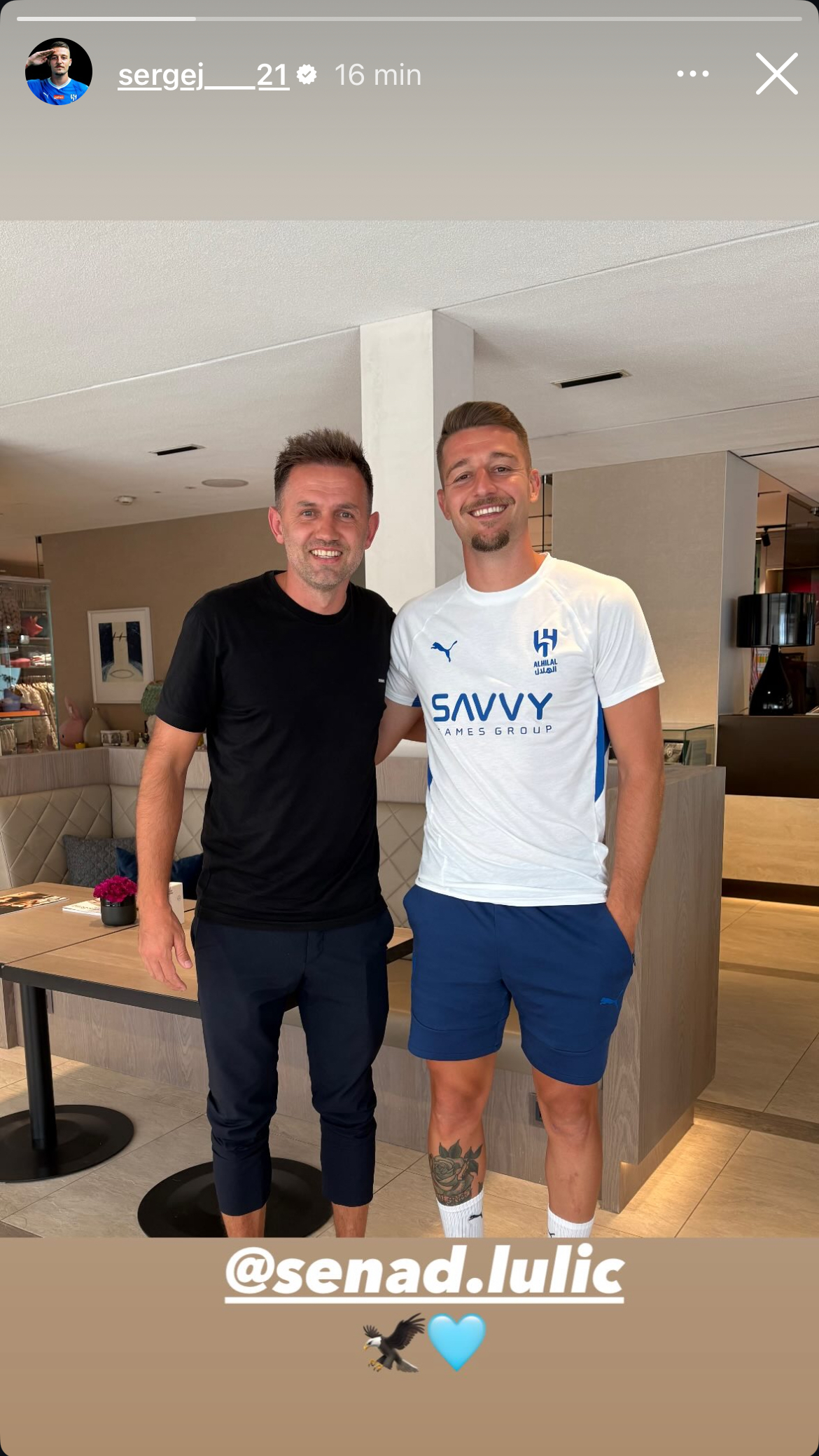 Un pezzo di storia della Lazio è tutta in Arabia. Senad Lulic insieme a Sergej Milinkovic-Savic: lo scatto pubblicato dal serbo nelle sue storie Instagram rievoca dolcissimi ricordi a tutto il popolo biancoceleste. Ad accompagnare la foto anche un'aquila e un cuore celeste. I due sono stati compagni nella Capitale dal 2015 al 2021, oggi si sono incontrati nel centro sportivo dell'Al-Hilal, dove gioca attualmente il centrocampista. Di seguito l'immagine.