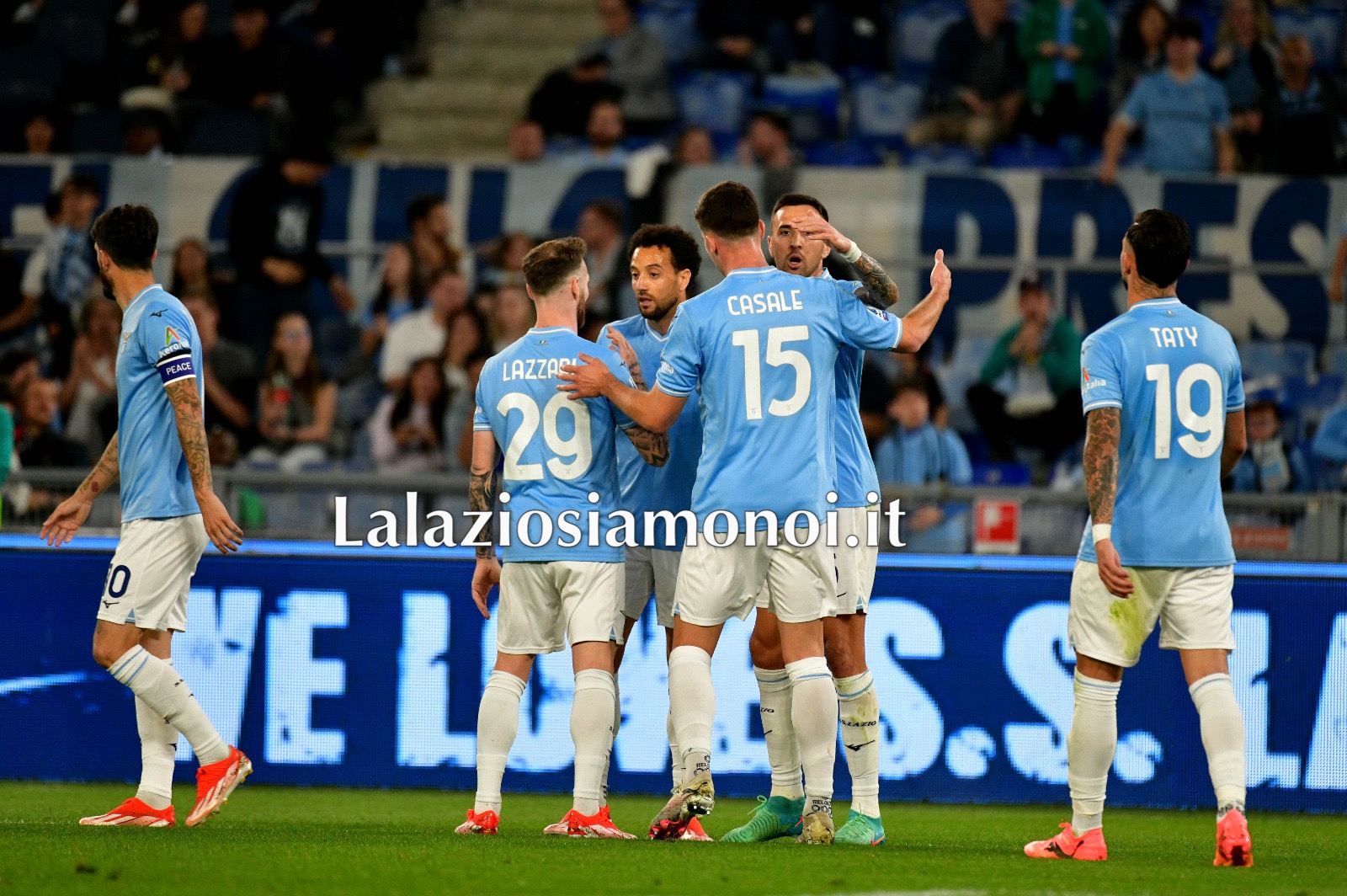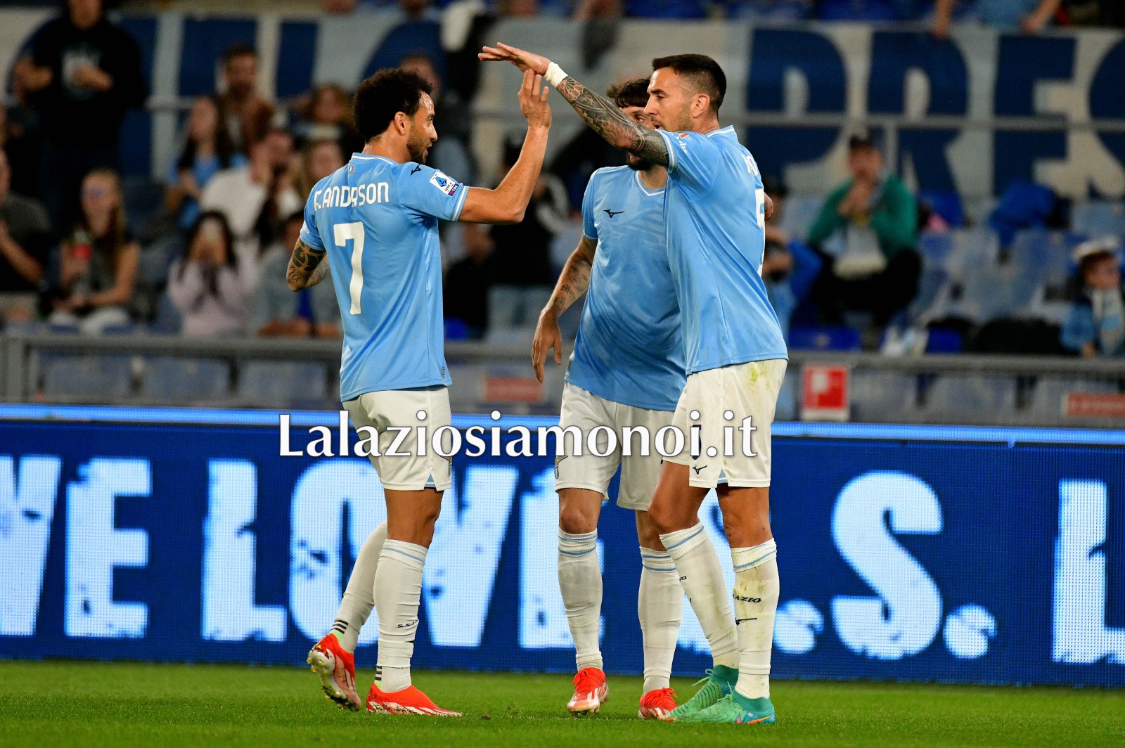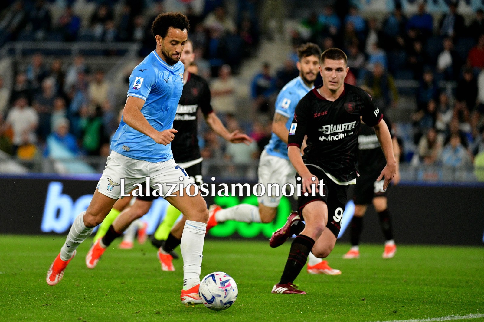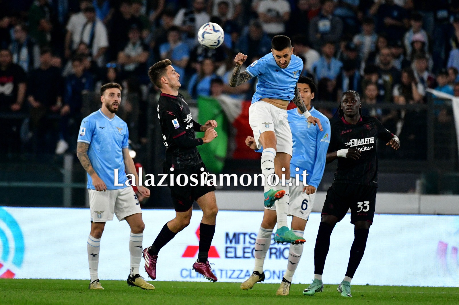 Vittoria importante della Lazio in casa contro la Salernitana in una sfida in cui la contestazione della Curva Nord l’ha fatta da padrona. I biancocelesti vanno in vantaggio con il gol di Felipe Anderson, seguito poco dopo da Vecino. Accorciano le distanze gli avversari con Tchaouna, poi ancora il brasiliano si regala la doppietta. Nella ripresa cala il poker Isaksen. Di seguito gli scatti migliori del match a cura della redazione de Lalaziosiamonoi.it.
