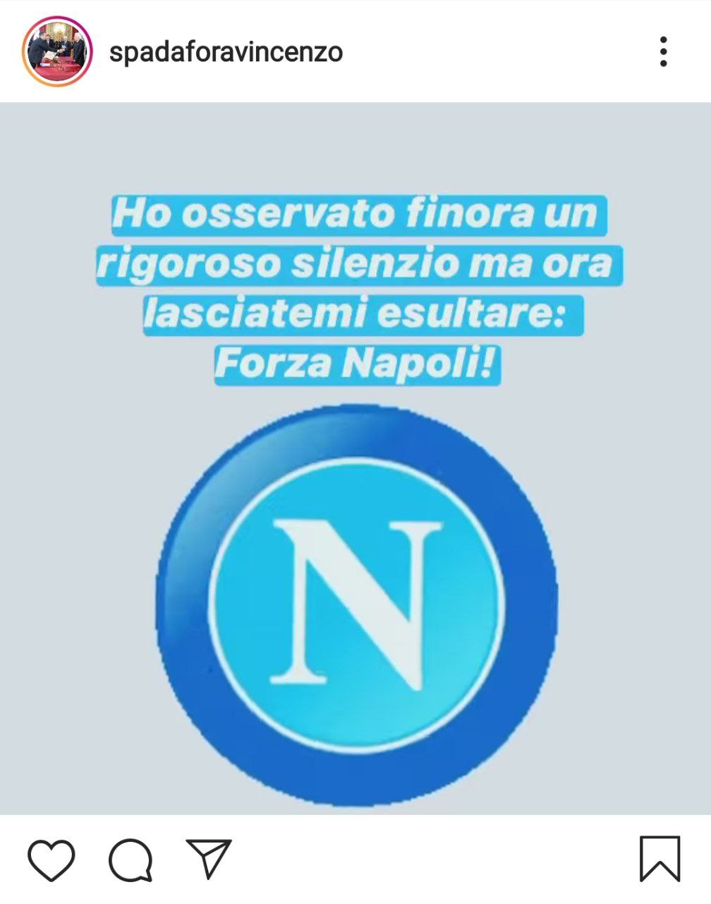 Battuta la Juventus, il Napoli si aggiudica la Coppa Italia al termine dei calci di rigore. I festeggiamenti sono scattati subito all'Olimpico di Roma, seguiti da quelli dei tifosi azzurri nelle rispettive abitazioni. Tra i sostenitori della squadra, ce n'è uno d'eccezione. Si tratta di Vincenzo Spadafora, al centro di dibattiti e notizie degli ultimi giorni. Il ministro dello sport ha pubblicato un messaggio sul proprio profilo Instagram a qualche secondo dal fischio finale dell'arbitro Doveri: "Ho osservato finora in rigoroso silenzio ma adesso lasciatemi esultare, forza Napoli".