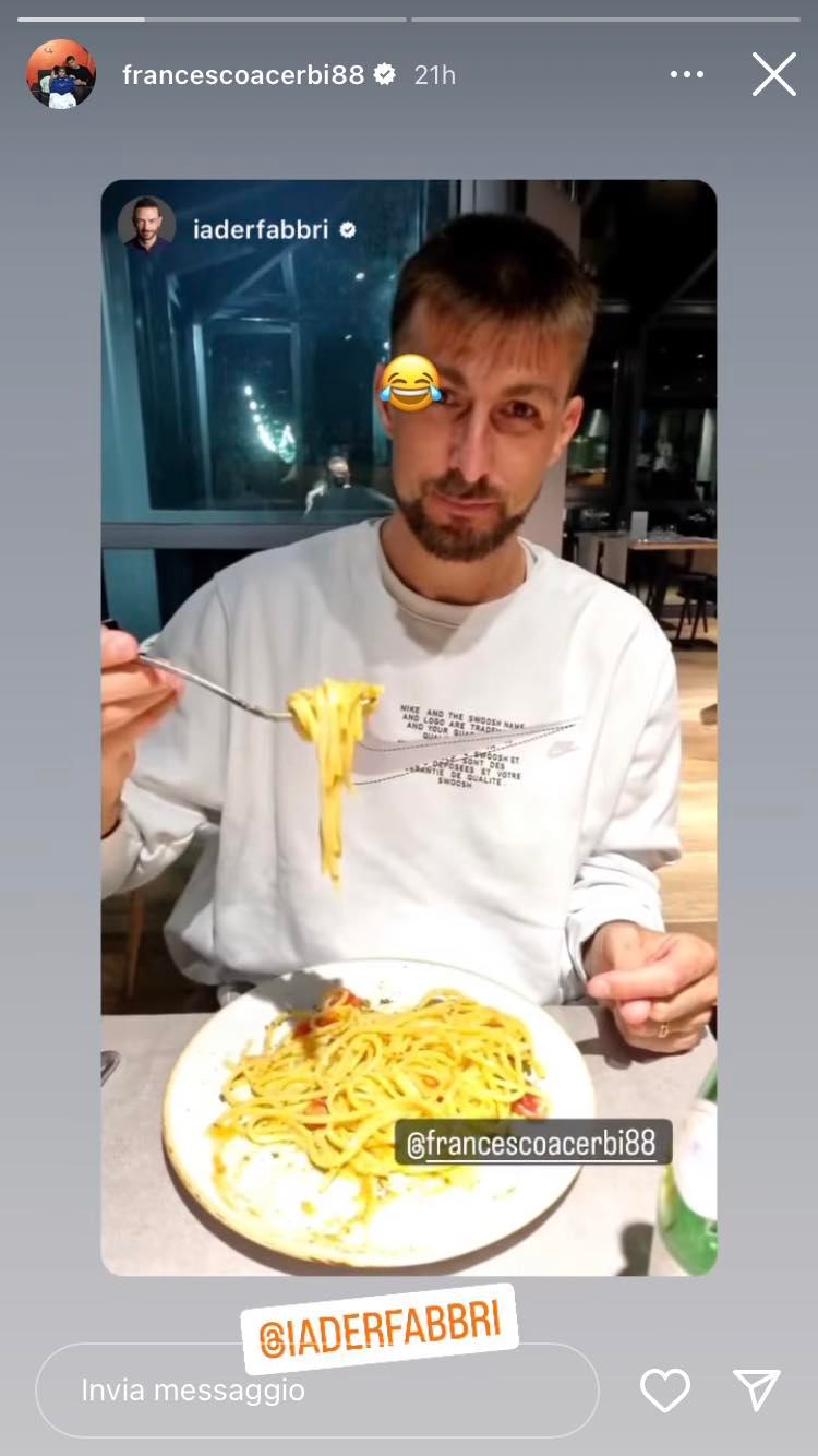Francesco Acerbi si è lasciato andare a un dolce ritorno romano. Come è noto, uno dei piatti tipici della cucina romana è la pasta alla carbonara. Ed è pur vero che le tradizioni della Capitale, anche per chi è solo di passaggio rimangano per sempre dentro chiunque abbia la possibilità di gustare i piatti caratteristici. L'esempio lo riporta proprio Francesco Acerbi, passato dalla Lazio all'Inter in questa finestra di calciomercato estiva. Seppur il rapporto con la tifoseria biancoceleste si sia sfaldato, per il Leone, così nominato dai sostenitori biancocelesti, Roma gli è rimasta nel cuore. In particolare, sui social il giocatore ha scherzato con il proprio nutrizionista davanti a un piatto di carbonara. "Devo fare una premessa, è lui che mi fa mangiare questo. Abbinamento proteico, fondamentale rapporto proteico per diminuire il carico glicemico!" ha scherzato mentre si stava gustando la carbonara.