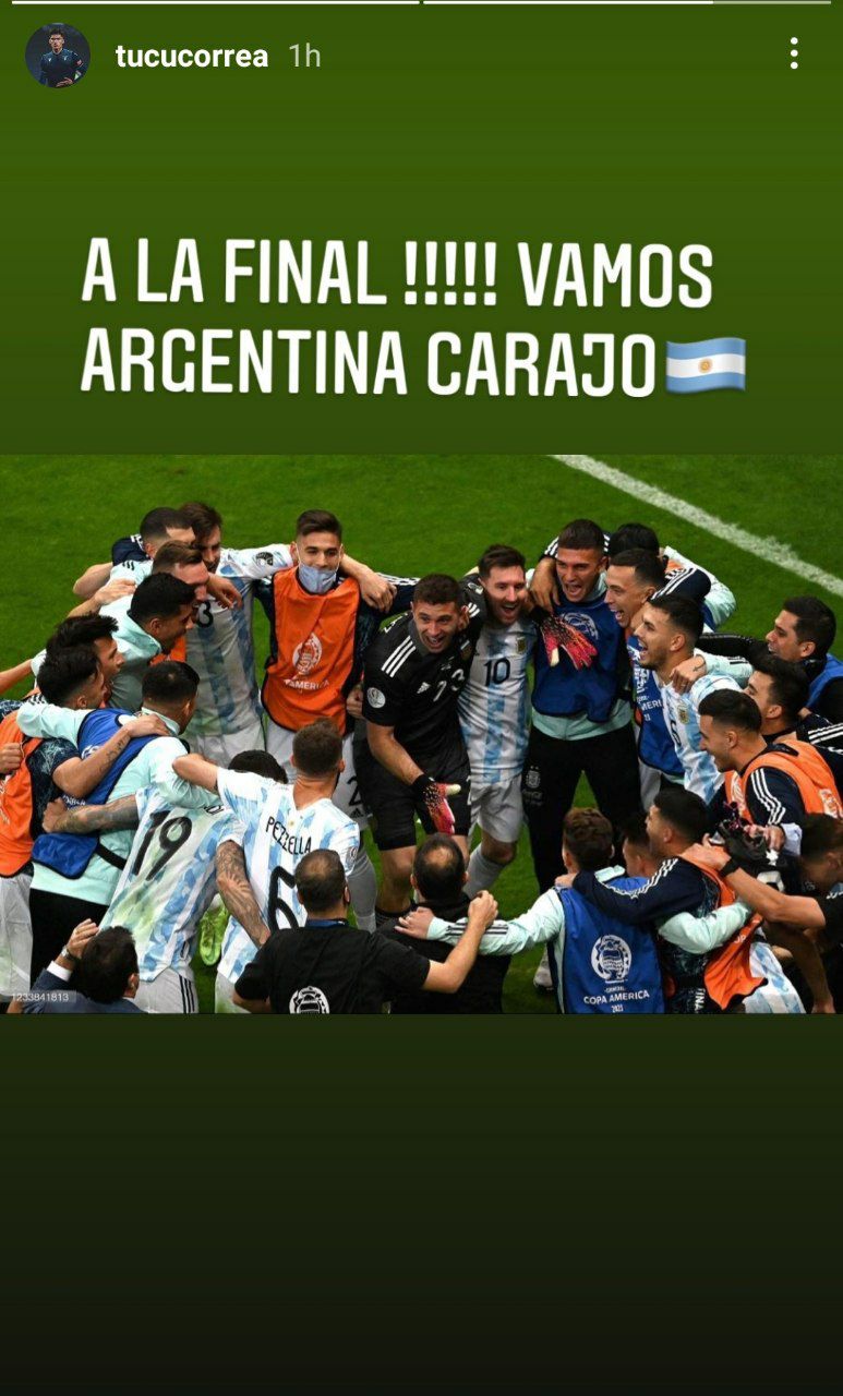 Serata speciale per Immobile e Acerbi, ma anche per Correa. La sua Argentina, impegnata contro la Colombia nella gara valida per la semifinale di Copa America, ha battuto gli avversari dopo i calci di rigore e raggiunto il Brasile nella finale in programma sabato 10 luglio allo stadio Maracanà di Rio de Janeiro. Nei tempi regolamentari, vantaggio dell'Albiceleste al 7' con Lautaro Martinez, e pareggio di Luis Diaz al 62' su suggerimento di Erdwin Cardona. Dagli undici metri, sbaglia prima De Paul, ma per la Colombia falliscono in tre: Davidson Sanchez, Yerry Mina ed Erwin Cardona. Il 'Tucu' non si è seduto neanche in panchina, ma al triplice fischio non è mancata la sua esultanza social: "In finale. Andiamo, Argentina".