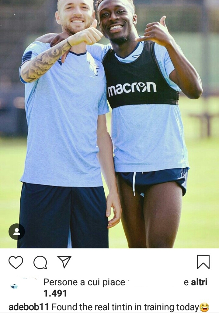 Faccia pulita, sorriso e ciuffetto biondo: Manuel Lazzari ha sposato la Lazio poco meno di un mese fa, e il suo nuovo compagno di squadra, Bobby Adekanye, ha già trovato qualcuno che gli assomiglia incredibilmente. L'attaccante olandese pesca nell'immaginario a fumetti e trova... Tintin. Secondo l'ex Liverpool, la somiglianza è delle più fedeli. Al termine del pomeriggio di lavoro a Marienfeld, il classe '99 ha postato su Instagram una foto in compagnia dell'esterno. E ci scherza su: "Oggi in allenamento ho trovato il vero Tintin!". Lazzari vede lo scatto e sta allo scherzo, commenta con svariate emoticon divertite e poi ricondivide la foto sul proprio profilo. La Lazio si allena, ma soprattutto fa gruppo: la preparazione alla nuova stagione prosegue alla grande.