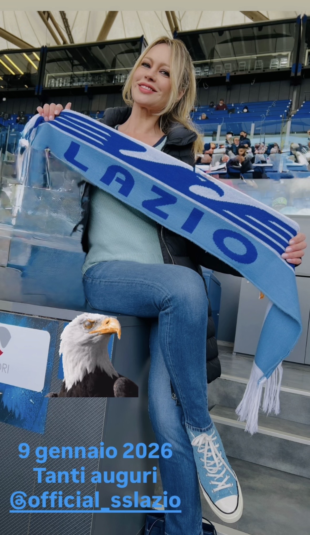 Tra chi ha voluto augurare buon compleanno alla Lazio c'è anche una delle tifose più accorate: Anna Falchi. La conduttrice ha postato una sua foto allo stadio, rigorosamente con la sciarpa biancoceleste al collo, accompagnata dalla frase: "9 gennaio 2026. Tanti auguri Lazio!".