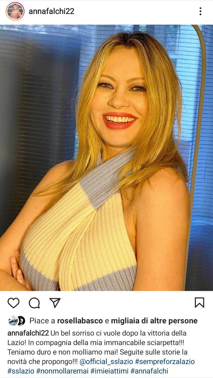 Immancabile, tra la valanga di festeggiamenti social per la vittoria della Lazio sulla Sampdoria, il post di Anna Falchi. La madrina biancoceleste ha condiviso con i propri followers di Instagram un suo scatto con la sola sciarpa addosso, per poi aggiungere: "Un bel sorriso ci vuole dopo la vittoria della Lazio. In compagnia della mia immancabile sciarpetta. Teniamo duro e non molliamo mai".