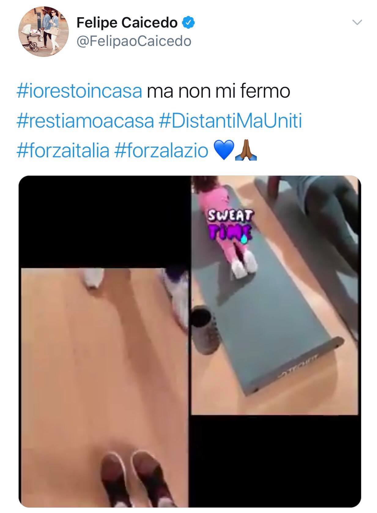 Questo è il momento di fermarsi, pensare al bene comune e ad arginare l'emergenza Coronavirus. Lo stanno facendo tutti, calciatori compresi. Anche i giocatori della Lazio sono a casa, con le proprie famiglie. Non perdono occasione, però, di mantenere integro il proprio fisico. Come Caicedo, che sui propri profili social ha ribadito: "Resto in casa, ma non mi fermo. Distanti, ma uniti. Forza Italia e forza Lazio", con tanto di foto che ritrae il materiale d'allenamento. Necessario mantenere alta la concentrazione per la ripresa del campionato.