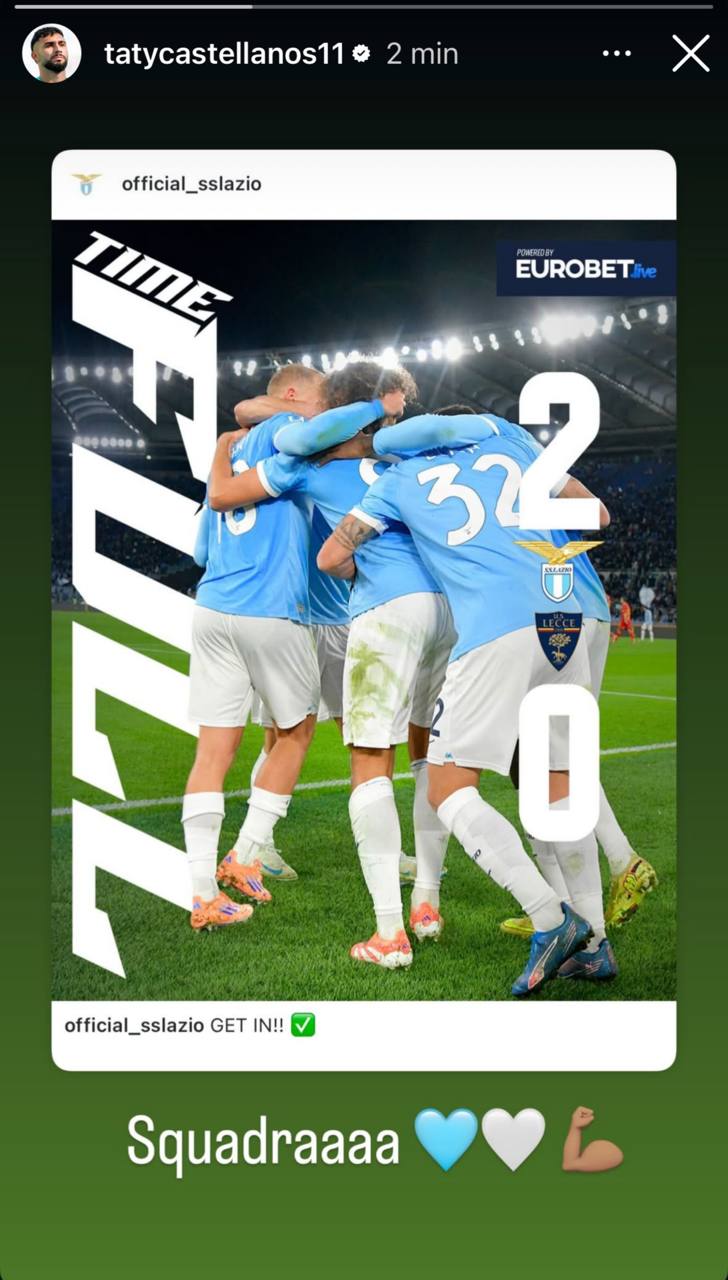 Taty Castellanos non è ancora tornato nelle mani di Sarri, ma continua a essere un punto fisso nella giornata biancoceleste. L’argentino, alle prese con il recupero dopo l’ultimo stop fisico, non perde un solo istante della sua Lazio. Anche questa sera, al triplice fischio di Lazio–Lecce, la sua reazione è stata immediata: Instagram aperto, screenshot del risultato e un messaggio semplice, diretto, sentito. È un modo per rimanere dentro al gruppo pur essendo lontano dal campo, un filo che Taty tiene teso perché sa quanto conti restare connessi al ritmo della squadra, soprattutto in momenti di crescita come quello attuale.