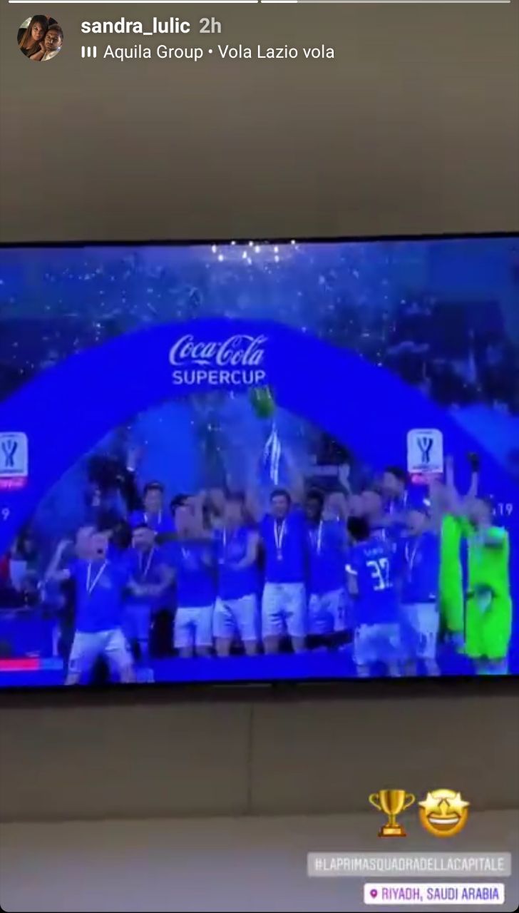 A detta di molti sembrava, praticamente, un’impresa impossibile. La Lazio era chiamata a battere nuovamente la Juventus, indiscussa prima della classe negli ultimi campionati di Serie A. Il calcio, però, ci ha abituati a repentini stravolgimenti di fronte. Ecco allora che, dopo il successo di due settimane fa, l’armata di Inzaghi fa il ‘bis’ ed alza nel cielo di Riyad la Supercoppa Italiana. I giocatori in campo hanno potuto contare sul sostegno delle ‘ladies’ vicine o lontane. Jessica Immobile e Gaia Inzaghi si sono godute la vittoria dalla vicina Dubai e, a pochi minuti dal triplice fischio, hanno pubblicato alcune ‘stories’ su Instagram. La prima ha dedicato un pensiero al marito: “I gol, per uno così, non saranno mai tutto. Lotta, si fionda su ogni lancio, si danna l’anima, fa ammattire chi prova a marcarlo. Incarna la voglia di vincere e lo spirito di sacrificio. Uno, dieci, cento Ciro”. Più concisa la dolce metà di mister Inzaghi, che ha scritto un efficace ‘Campioni’. Sandra Lulic, poi, ha condiviso con i propri followers la sua gioia per la vittoria, postando il video della premiazione ed aggiungendo un hashtag adatto oggi come non mai: “la prima squadra della capitale”. Subito dopo, qualche parola in più: "Che squadra, che brividi, che emozione". La moglie di Danilo Cataldi ha scritto ‘Spettacolo’ accanto alla foto del centrocampista con in mano la Supercoppa, per poi dedicare al marito un intero post: "Le emozioni che tu mi fai provare sono increscrivibili. Meriti questo ed altro amore mio. Immenso amore, amor per te!". Diletta, la fidanzata di Lazzari ha pubblicato lo 'screenshot' della videochiamata con l’ex Spal. In bella vista, neanche a dirlo, la medaglia d’oro.