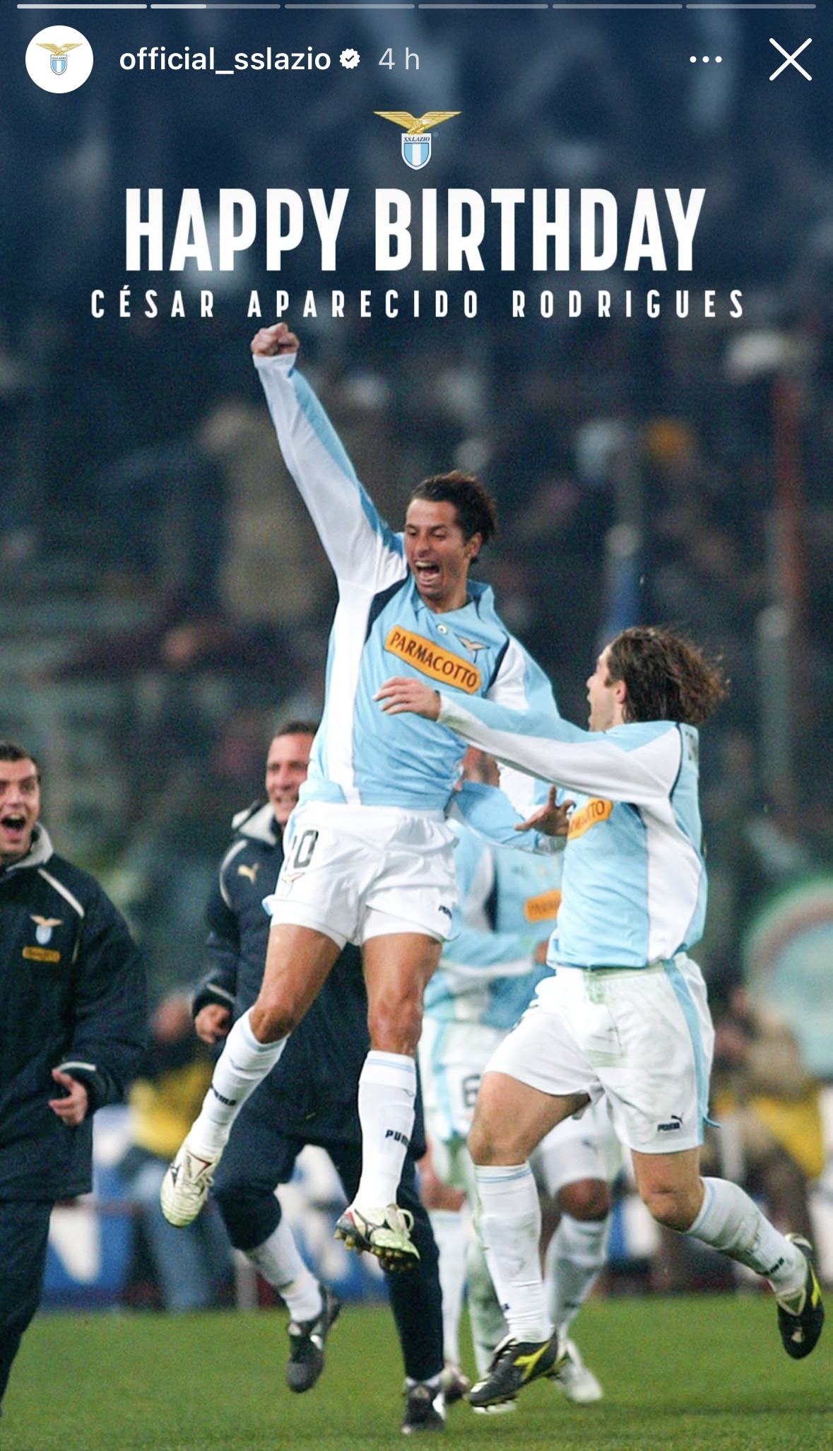 "Compie oggi gli anni l'ex calciatore della Lazio Aparecido Cesar. Il brasiliano spegne 51 candeline. Arrivato in biancoceleste nel 2001, colleziona 119 presenze e 18 gol fino al gennaio 2006. Per Cesar, anche la Coppa Italia del 2004 in bacheca. Successivamente, ha anche allenato le giovanili biancocelesti".