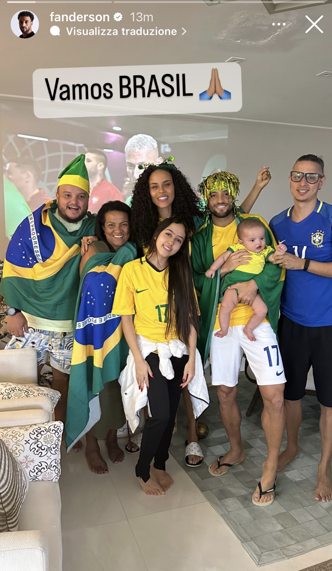 Finalmente il suo Brasile. La squadra allenata da Tite ha esordito questa sera al Mondiale in Qatar nella difficile sfida contro la Serbia del suo compagno di squadra Milinkovic - Savic. Il cuore di Felipe Anderson è solo verdeoro e in occasione del match tutta la famiglia si è riunita davanti alla televisione per seguire la partita. Completini, bandiere, parrucche: c'è tutto per iniziare a tifare.