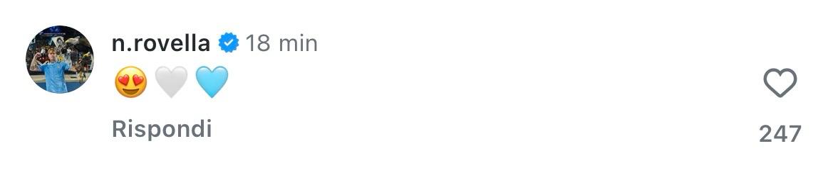L'ormai ex giocatore della Dea è atterato in queste ore a Fiumicino, la società ha annunciato il suo arrivo con un post pubblicato tramite i profili social ufficiali. Il suo primo scatto con la sciarpa biancoceleste che ha suscitato la reazione di Rovella che ha commentato il post con l'emoticon della faccia con gli occhi a cuoricino e due cuori uno bianco e uno celeste. I due hanno un legame d'amicizia forte.